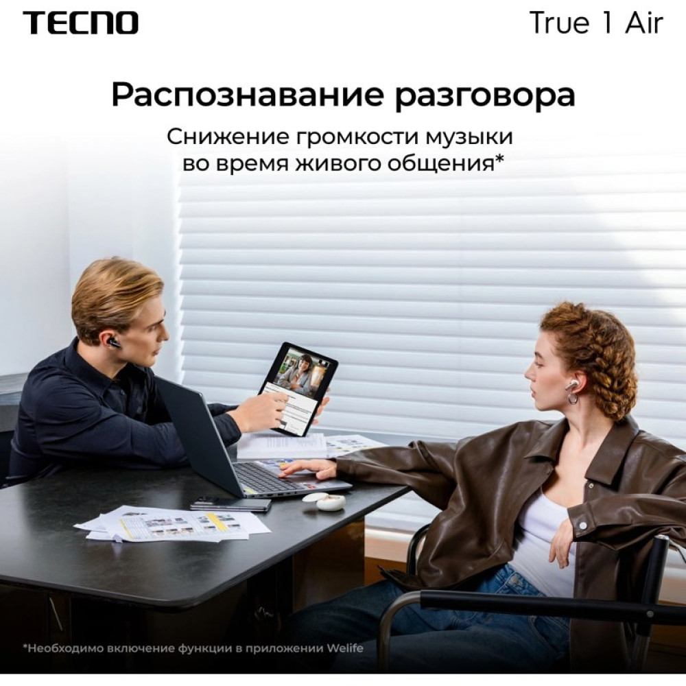 Гарнитура Tecno True 1 Air TU01 кремовый беспроводные bluetooth в ушной раковине (TU01 AIR CREAMY WHITE)