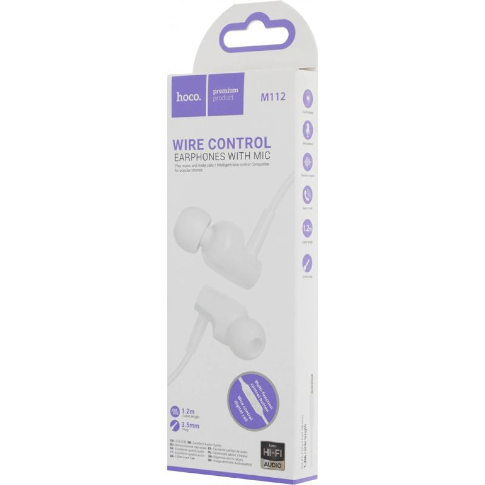 Гарнитура внутриканальные Hoco M112 1.2м белый проводные в ушной раковине