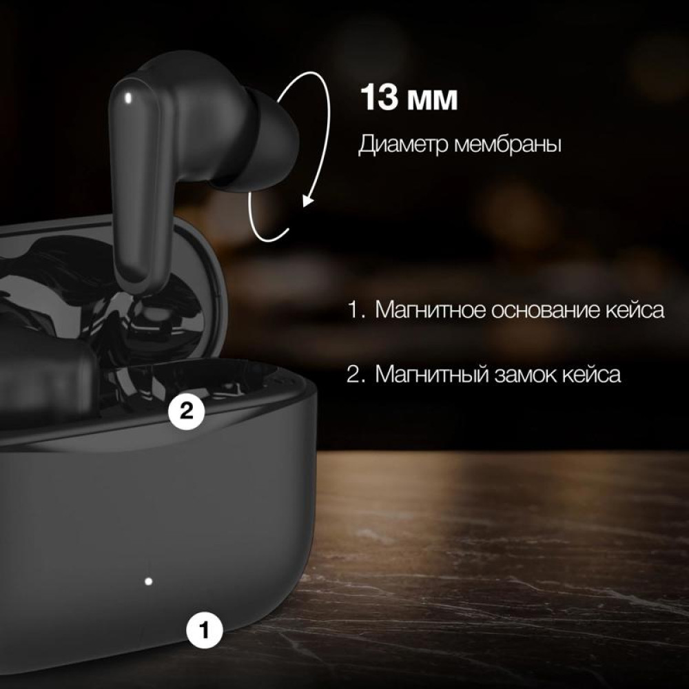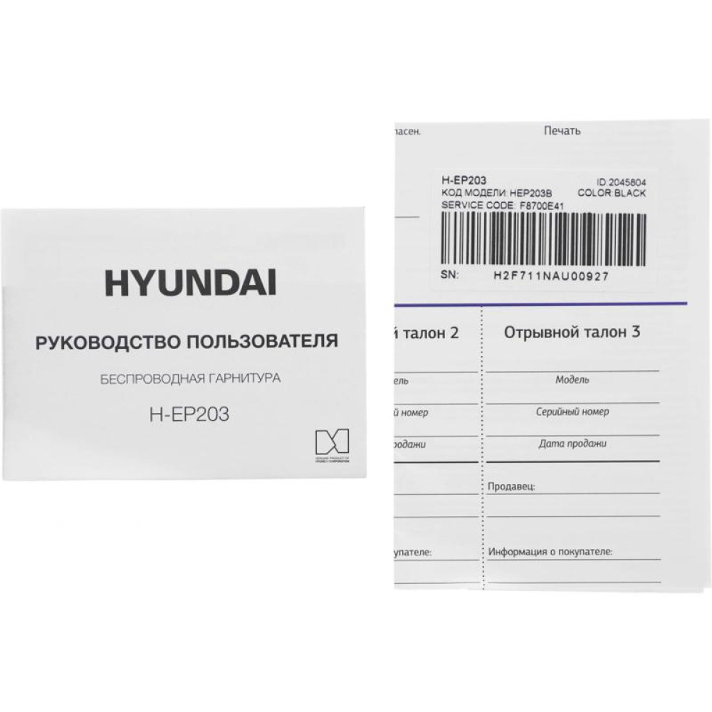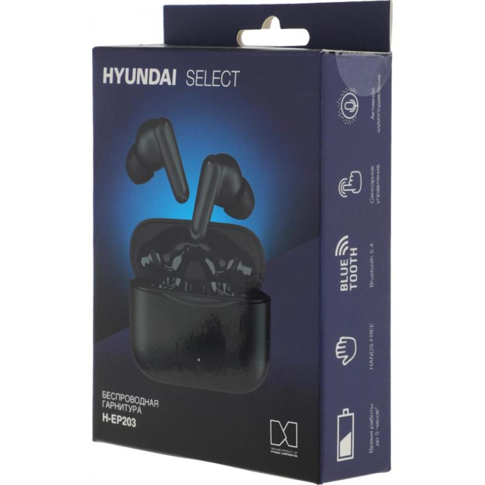 Гарнитура внутриканальные Hyundai H-EP203 черный беспроводные bluetooth в ушной раковине (HEP203B)