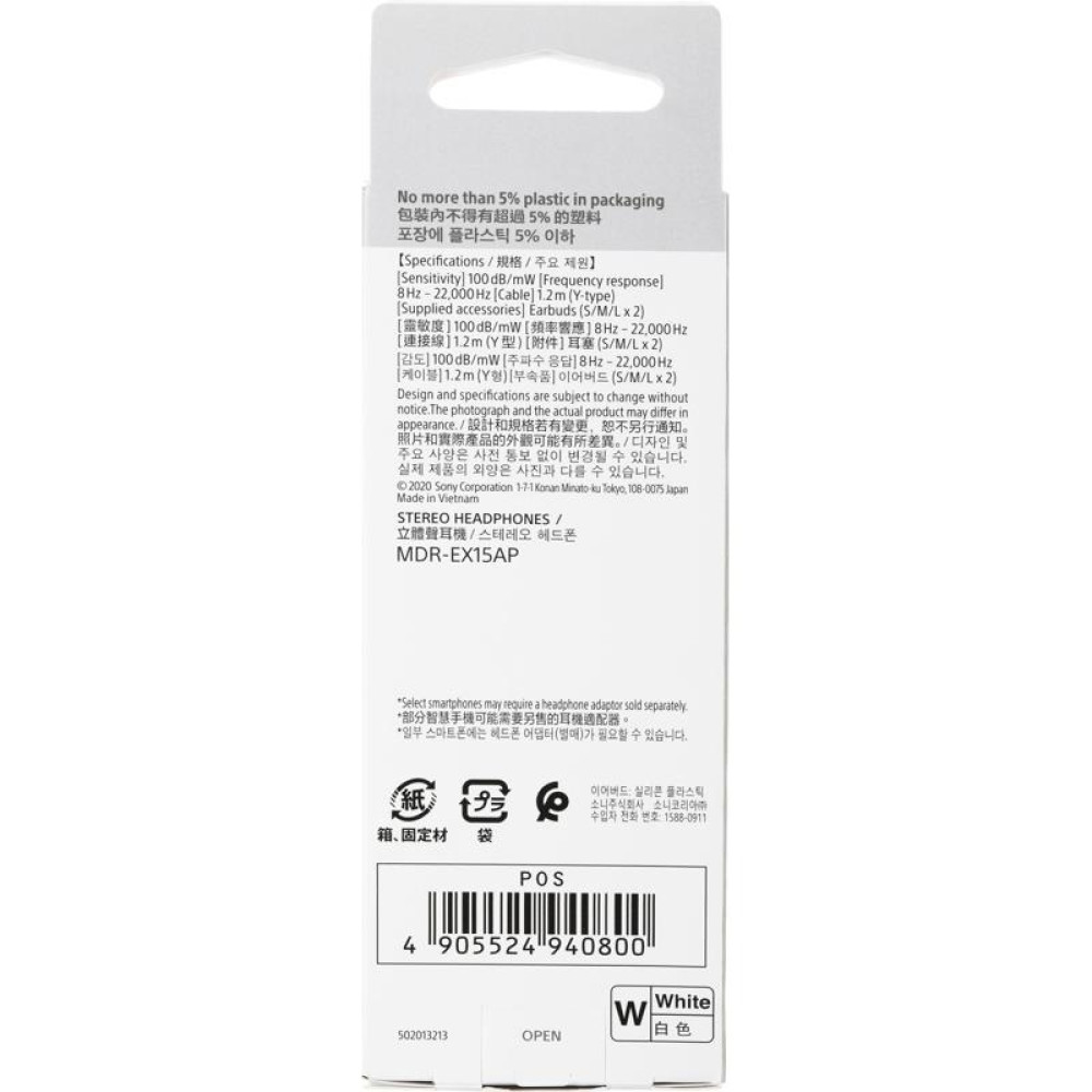 Гарнитура внутриканальные Sony MDR-EX15AP 1.2м белый проводные в ушной раковине (MDR-EX15APW)