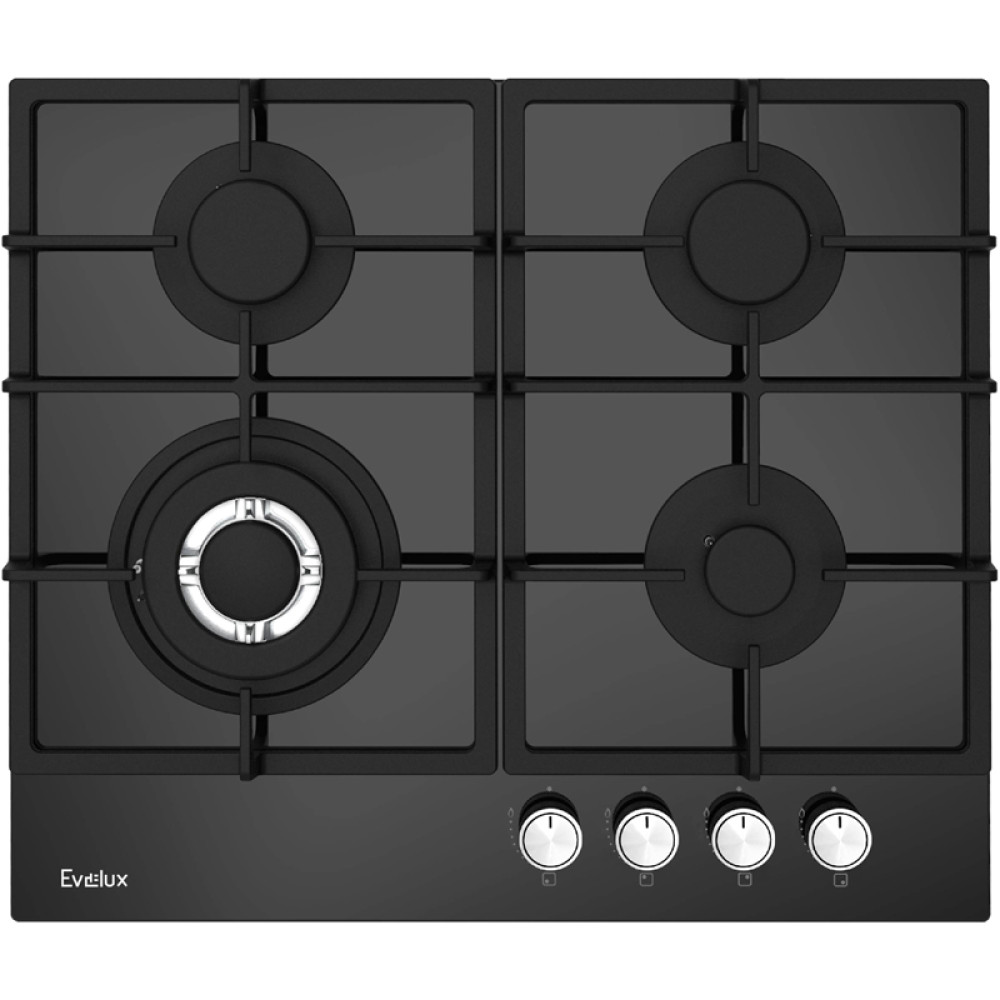 ГАЗ, 60 см, 4 конфорки, черное стекло