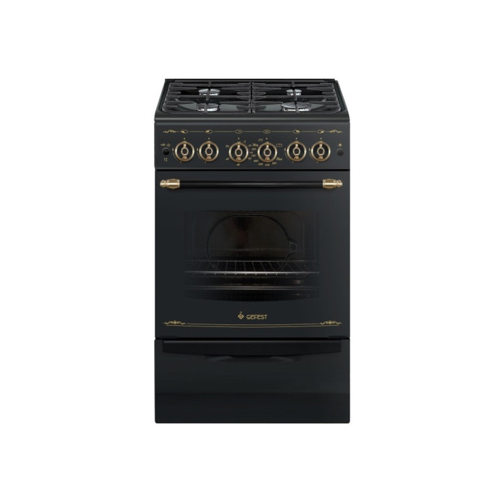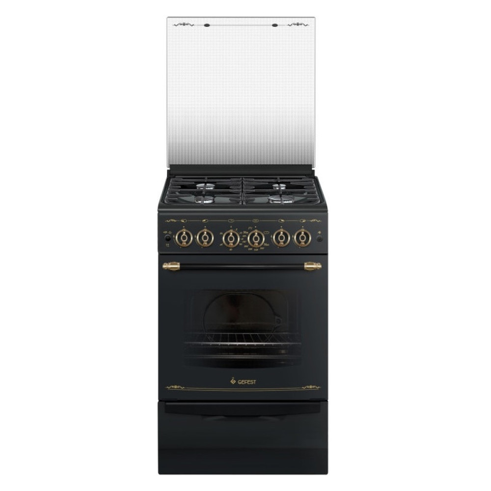 О модели GEFEST ПГ 5100-02 0183Черная газовая плита шириной 50 см, фасад покрыт эмалью, элементы декора выполнены в ретро-дизайне. Хорошее решение для кухни в кантри-стиле. Модель с электророзжигом горелок рабочего стола и духового шкафа, конфорки защищены чугунными решетками и стеклянной крышкой.Жарочный шкаф работает в двух режимах - термостатированный нагрев и гриль. Нижняя горелка оснащена газ-контролем, большой объем духовки позволяет применять вертел с электроприводом. Модель снабжена механическим таймером со звуковым сигналом.Ключевые преимущества:- Чугунные решетки - Электророзжиг - Газ-контроль духовки- Таймер- Гриль- Вертел с электроприводом- Подсветка духовки- Съемные проволочные направляющие духовки- Выдвижной ящик для посуды и принадлежностей- Ножки регулировочные