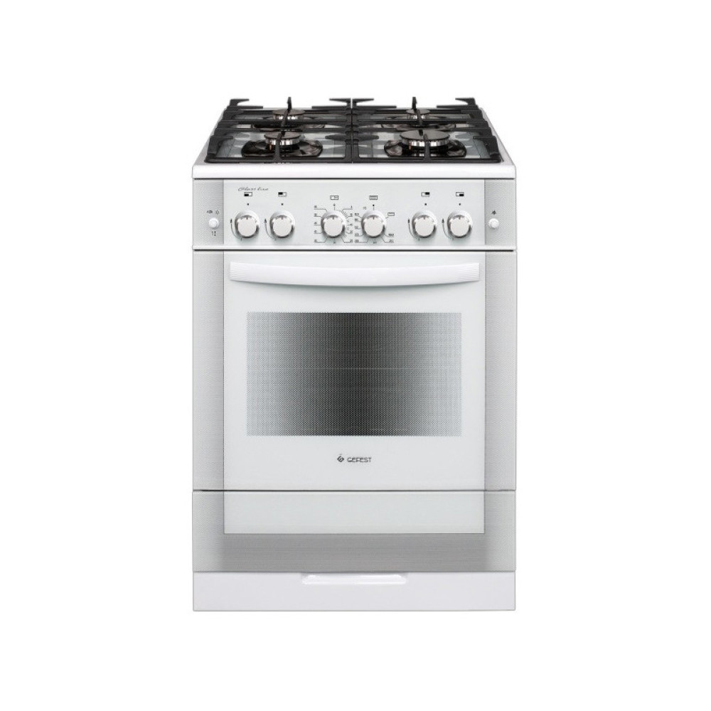 Белая газовая плита шириной 60 см, со стеклянными фасадом и рабочей поверхностью. Внешне смотрится бытовой прибор очень привлекательно, классический дизайн дополнен хорошим техническим оснащением. На панели управления, помимо поворотных ручек управления газовыми горелками, установлен механический таймер со звуковым сигналом. Горелки с электроподжигом, розжиг осуществляется нажатием кнопки.Конфорки, а их четыре (две стандартные, малая и большая, с быстрым нагревом) защищены чугунными решетками, прочными и удобными в обиходе. Духовой шкаф оборудован термостатом, грилем и вертелом, горелка с газ-контролем, перекрывающим подачу газа при угасании пламени.Ключевые преимущества:- Чугунные решетки- Электророзжиг- Газ-контроль духовки- Таймер механический- Гриль- Вертел с электроприводом- Подсветка духовки - Съемные проволочные направляющие духовки- Выдвижной ящик для посуды и принадлежностей- Ножки регулировочные