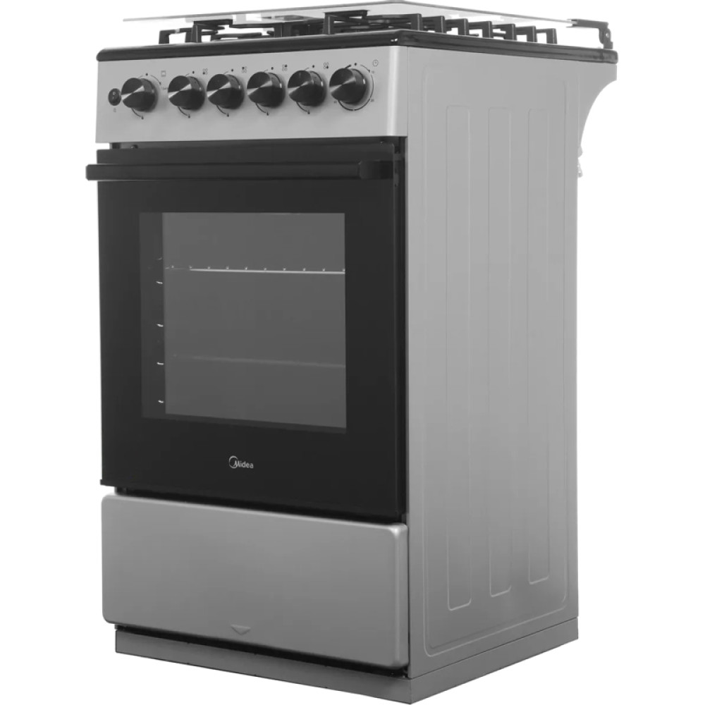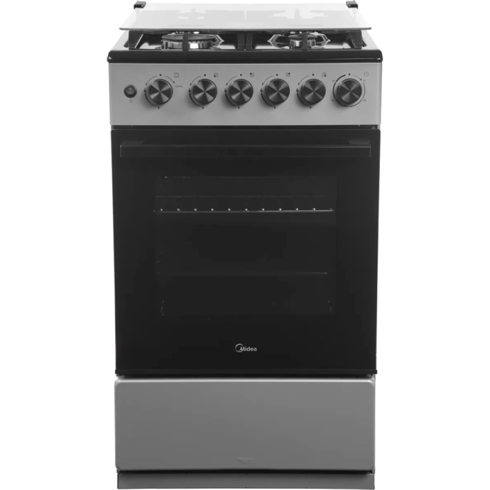 Газовая плита Midea, отдельностоящая, газовая варочная панель, 4 конфорки, автоподжиг, газконтроль, механический таймер (50 мин), объем дух. шкафа 59 л, цвет серый