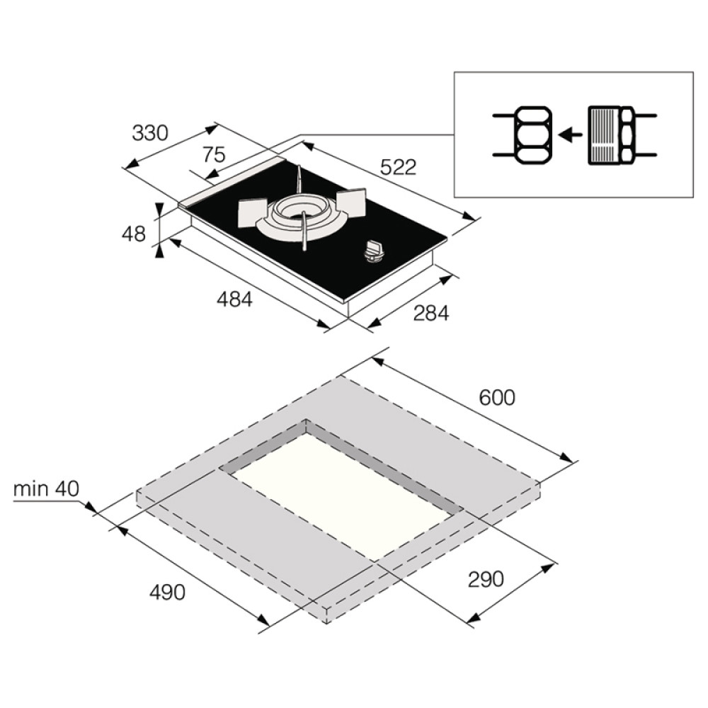 Газовая варочная панель ASKO/ Арт. 741473 ; Газовая варочная панель ASKO, 1 зона,материал стеклокерамика,кольцо для вока-чугун,электроподжиг, цвет черный