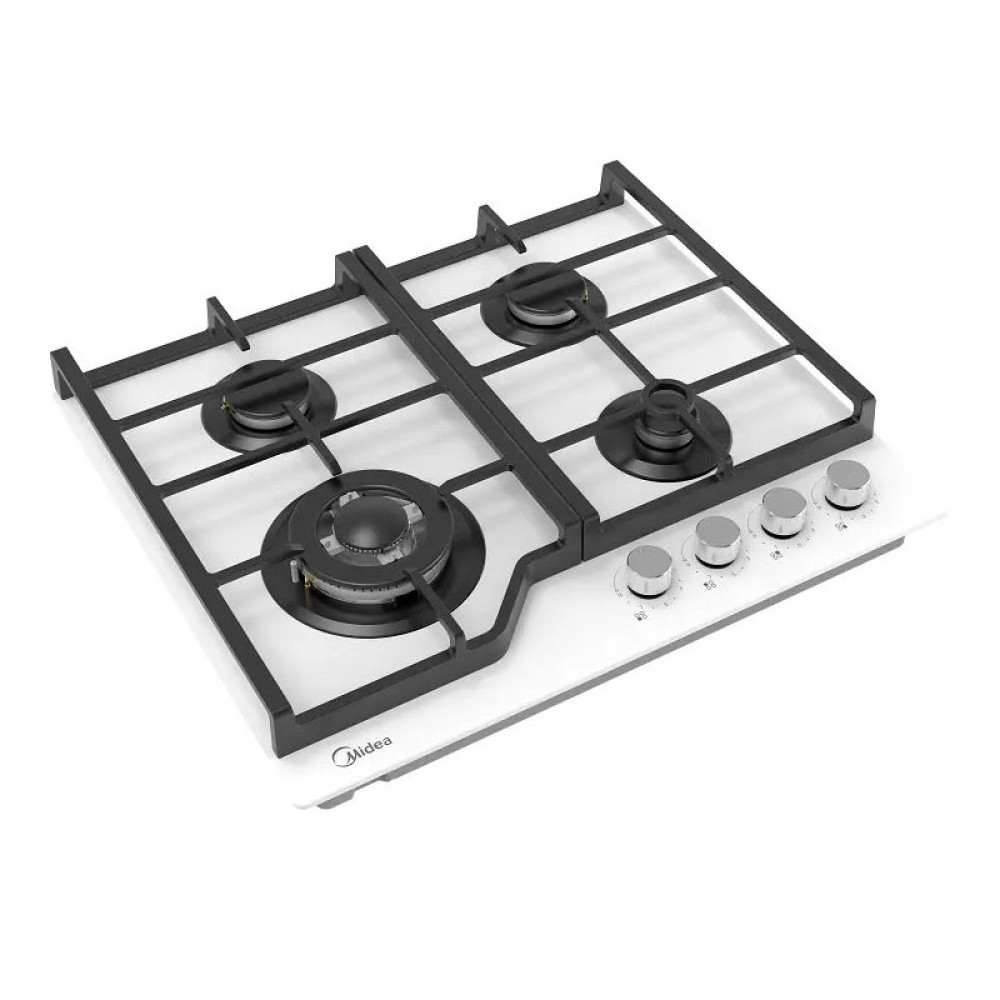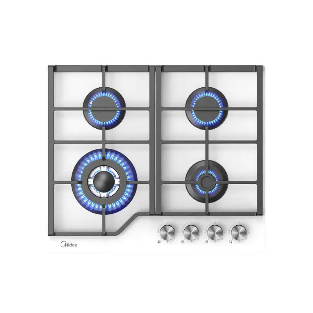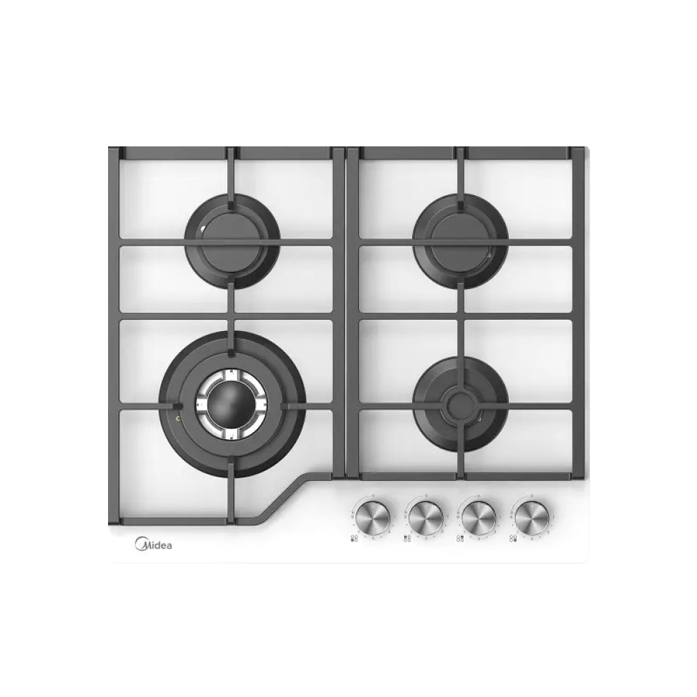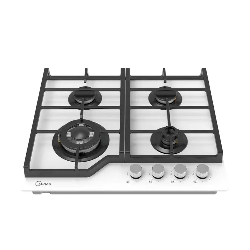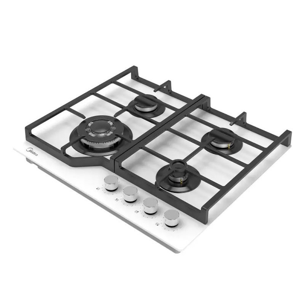 Газовая варочная панель MIDEA/ Газовая варочная панель MIDEA, 60 см, 4 конфорки, закаленное стекло, WOK-конфорка, чугунные решетки, автоподжиг, газконтроль, адаптер для кофе, цвет белый
