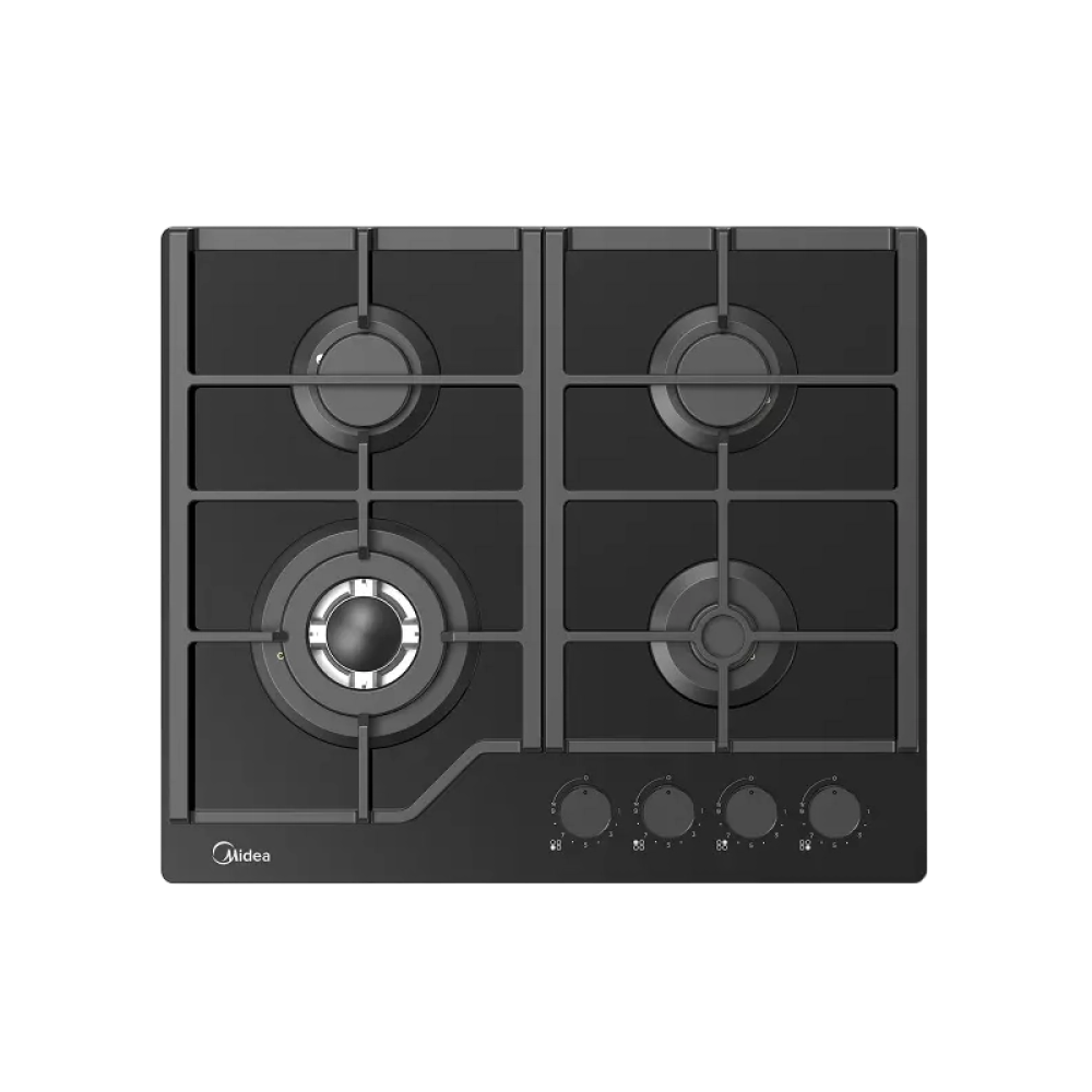 Газовая варочная панель MIDEA/ Газовая варочная панель MIDEA, 60 см, 4 конфорки, закаленное стекло, WOK-конфорка, чугунные решетки, автоподжиг, газконтроль, адаптер для кофе, цвет черный