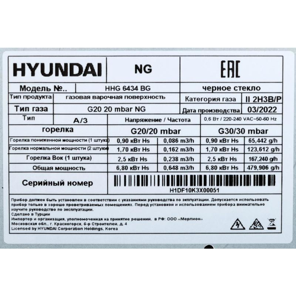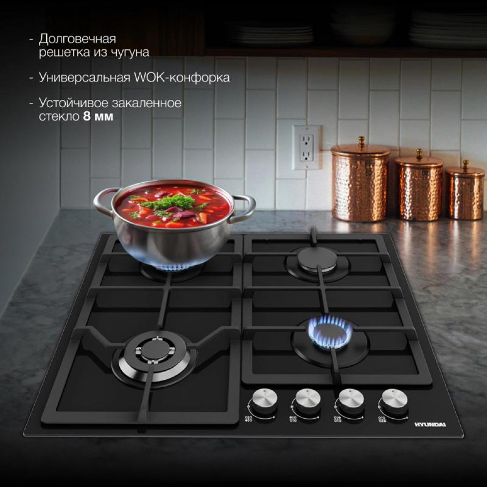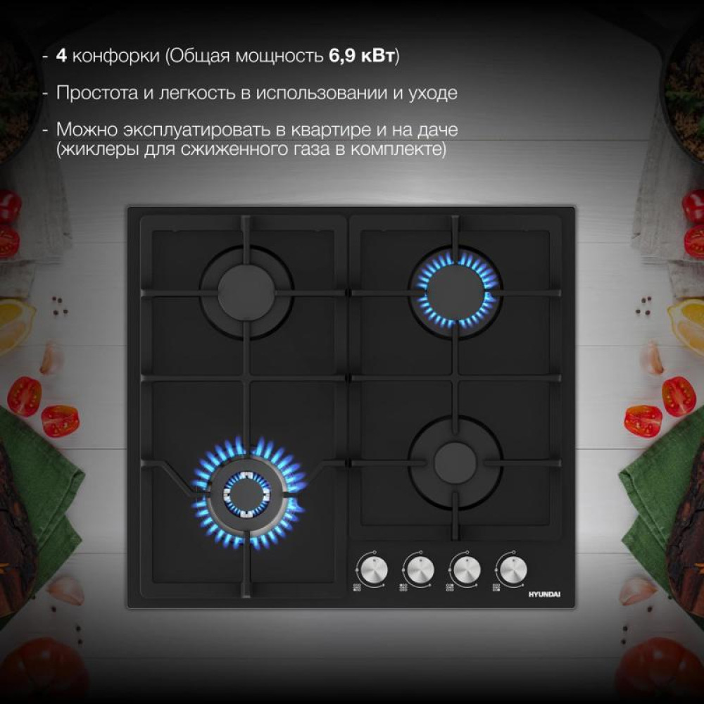 Газовая варочная поверхность/ Газовая варочная поверхность Hyundai HHG 6434 BG черный