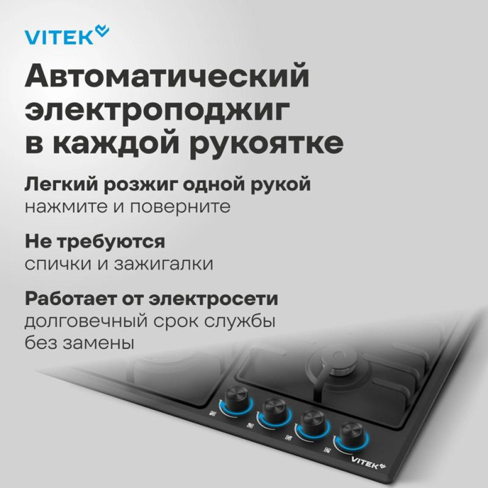 Газовая варочная поверхность/ Газовая варочная поверхность Vitek VGH 6410W MBK черный матовый