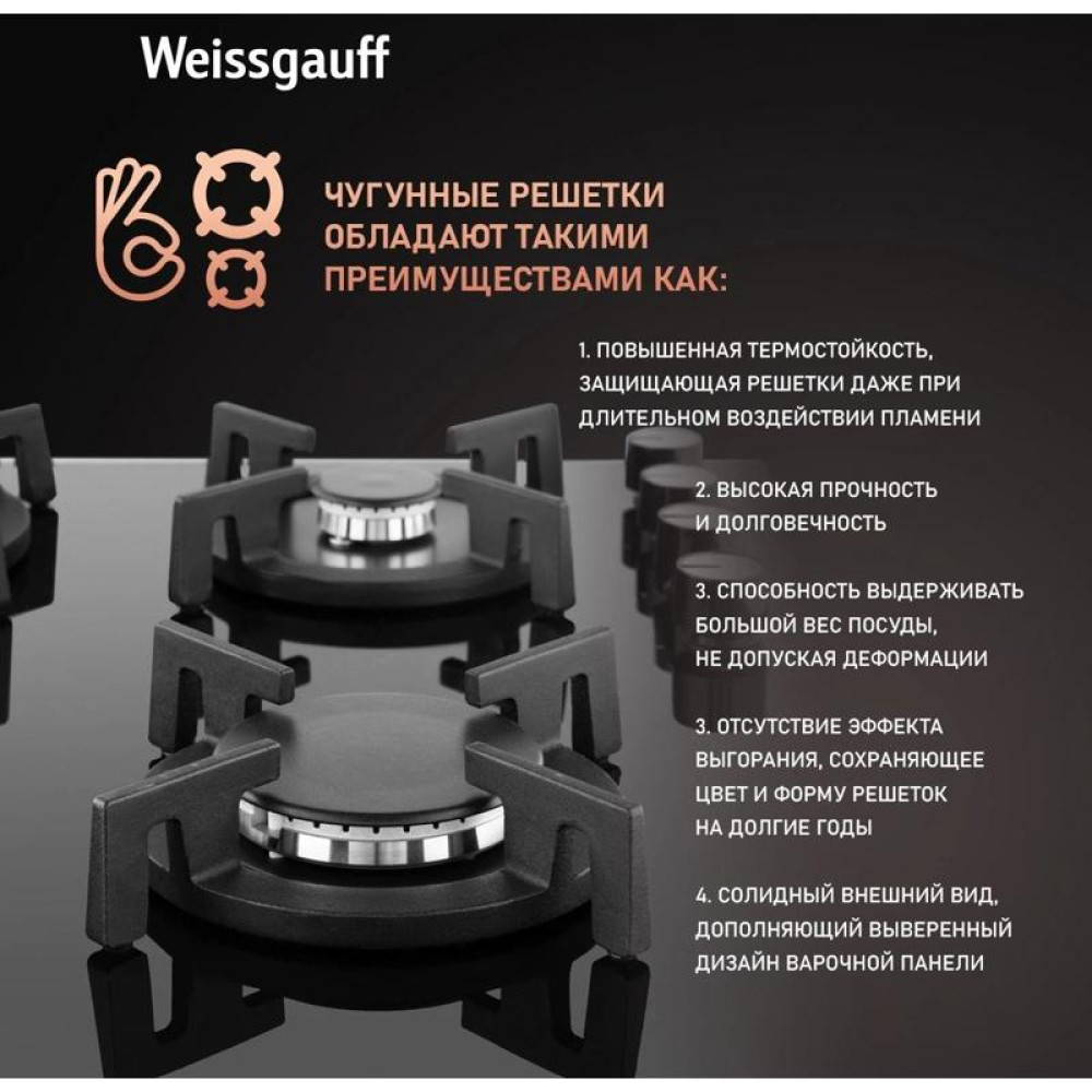 Газовая варочная поверхность/ Газовая варочная поверхность Weissgauff HG 640 BGV черный