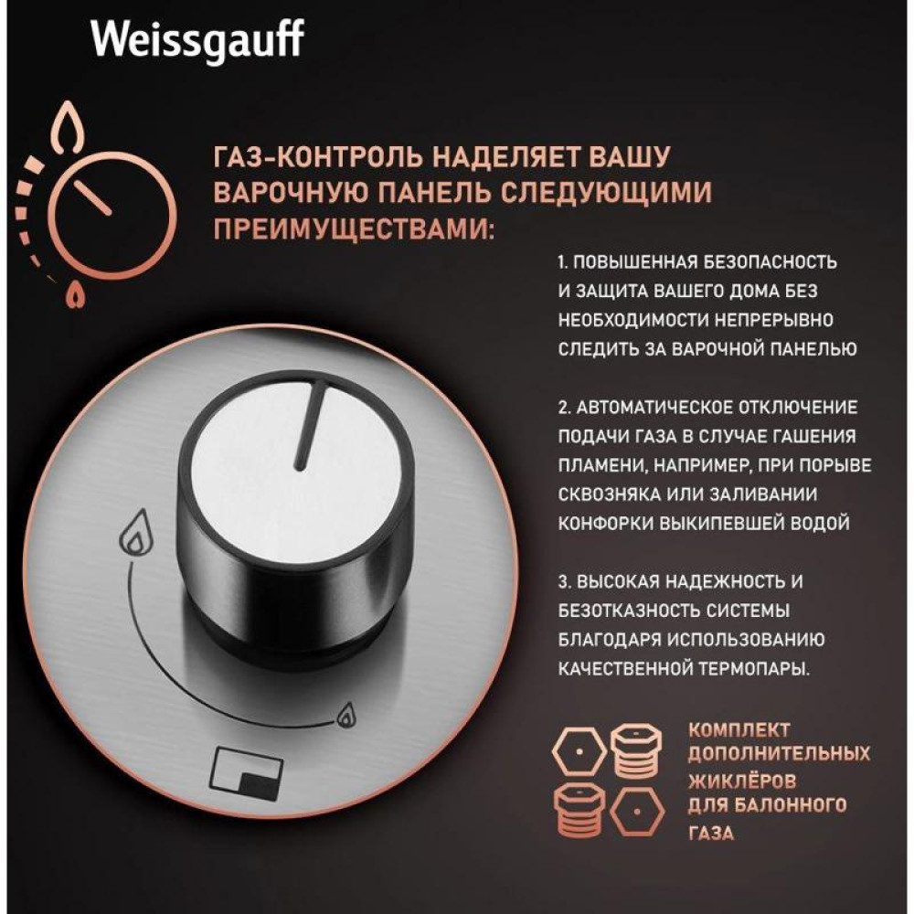Газовая варочная поверхность/ Газовая варочная поверхность Weissgauff HGG 641 XV нержавеющая сталь