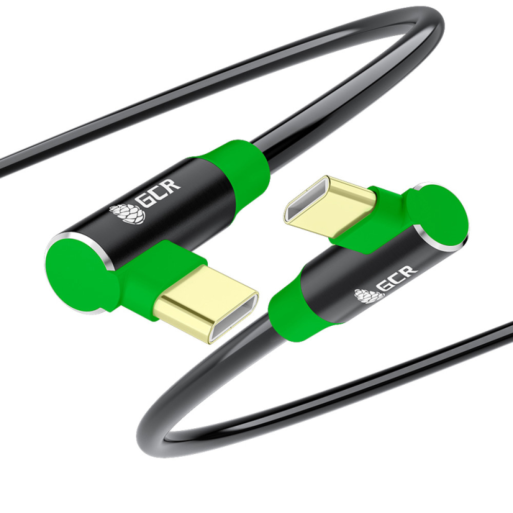 GCR Кабель PREMIUM 0.15m TypeC / TypeC угловой для PowerBank, PD 60W, быстрая зарядка для iPhone 15, силикон, черный, AL корпус, GCR-56382