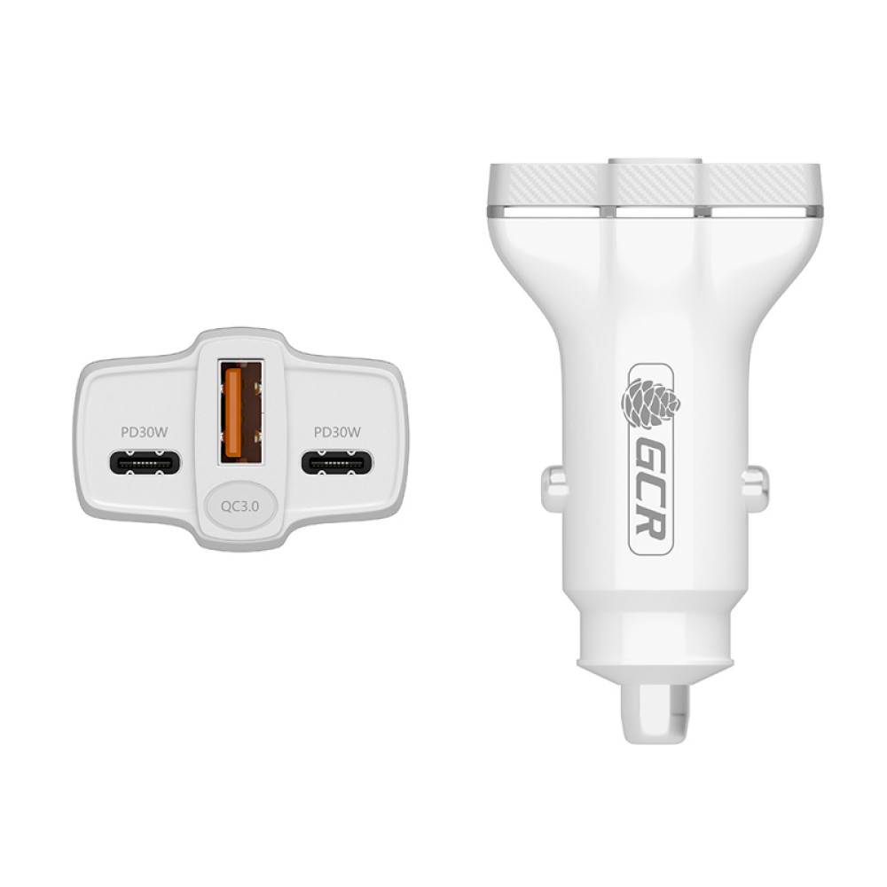 GCR PRO Автомобильное зарядное устройство 3в1, USB QC3.0 + 2 порта Type-C PD 30W, белый, GCR-56665