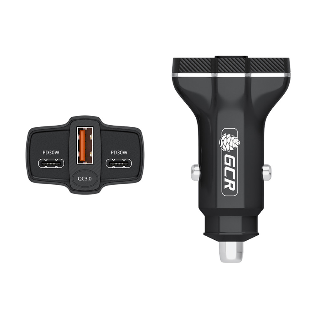 GCR PRO Автомобильное зарядное устройство 3в1, USB QC3.0 + 2 порта Type-C PD 30W, черный, GCR-56666