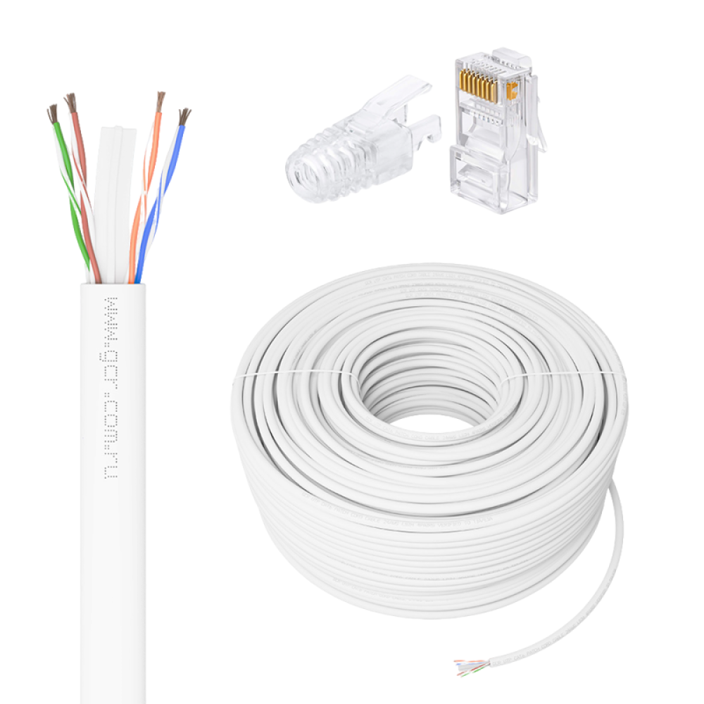 GCR PRO Кабель LAN DIY витая пара 50m в бухте, LSZH UTP кат.6, медь, многопроволочный, белый + Коннектор RJ-45 8p8c сборный 20шт., GCR-56635