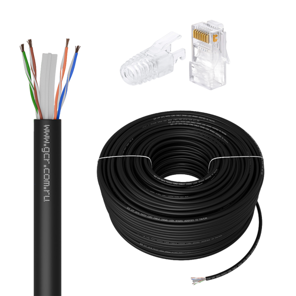 GCR PRO Кабель LAN DIY витая пара 50m в бухте, LSZH UTP кат.6, медь, многопроволочный, черный + Коннектор RJ-45 8p8c сборный 20шт., GCR-56637