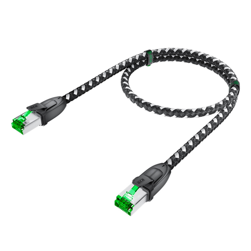 GCR PRO Патч-корд PROF прямой 0.3m, UTP медь кат.6, STRONG черно-белый нейлон, ethernet high speed 10 Гбит/с, T568B