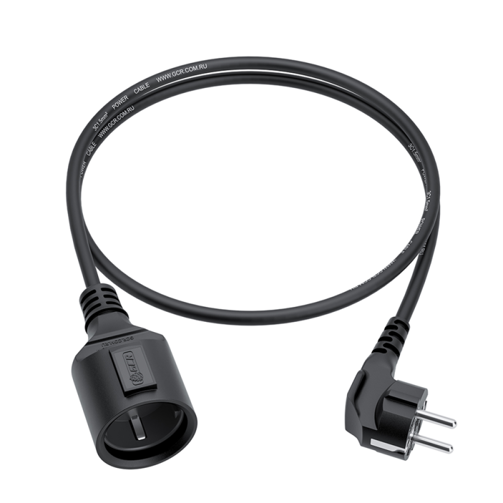 GCR PRO Удлинитель PROF черный, 5.0m, евровилка угловая Schuko - евророзетка, 3*1,0mm, медь, GCR-56411