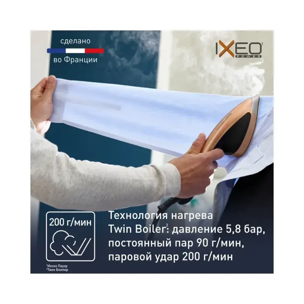 Давление до 5.8 бар, постоянный пар до 90 г/мин и паровой удар до 200 г/мин позволят вам без лишних усилий справиться с любыми складками.