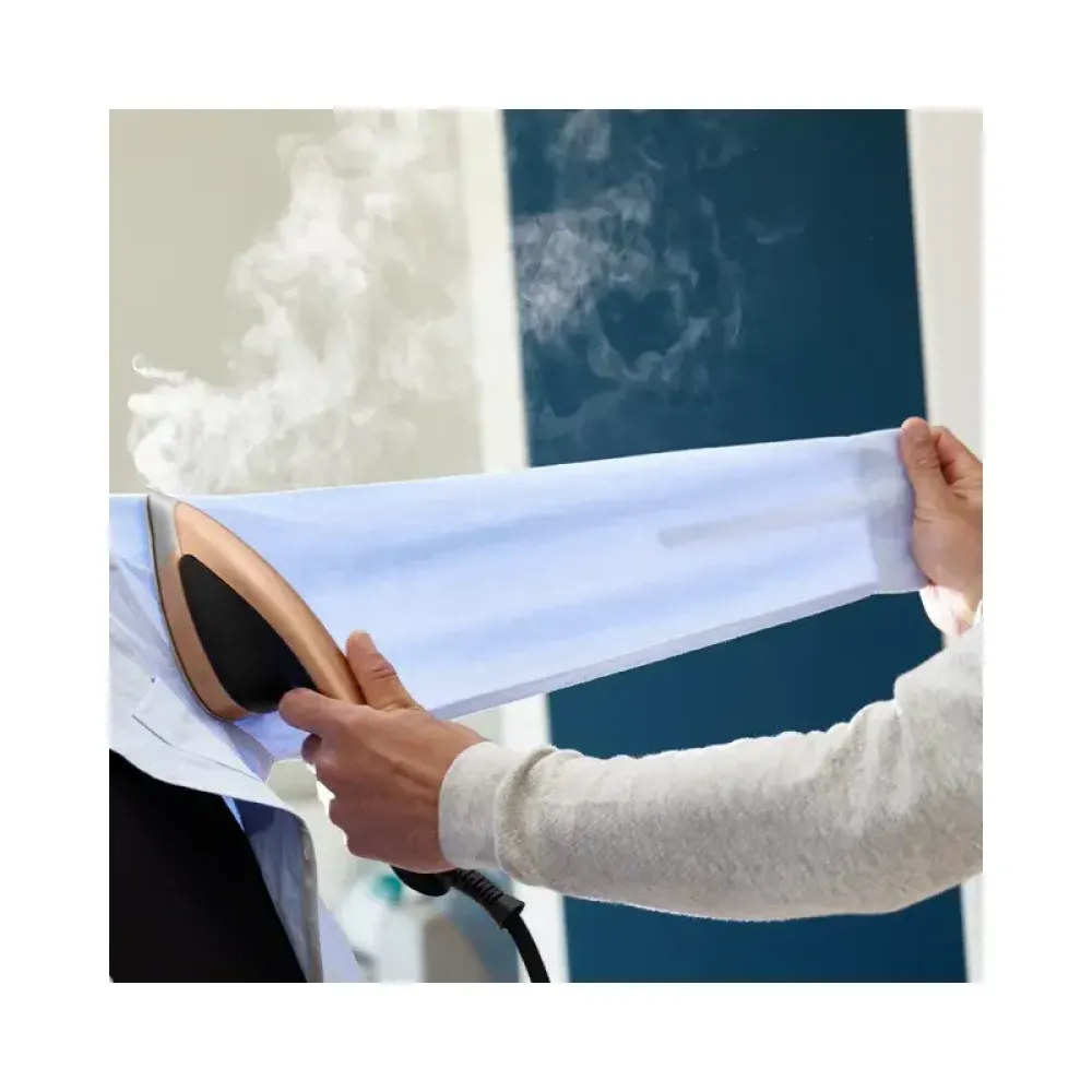 Усовершенствованная система ухода за тканями создает комбинацию мощного пара и безопасной температуры для всех типов ткани, даже таких деликатных, как шелк, без дополнительных настроек и риска прожечь ткань.