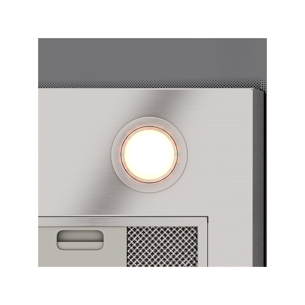Две светодиодные лампы (по 3,5 Вт) обеспечивают равномерное освещение рабочей зоны. В комплекте — анодированный алюминиевый рамочный жироулавливающий фильтр, который эффективно задерживает частицы жира и упрощает уход за устройством.