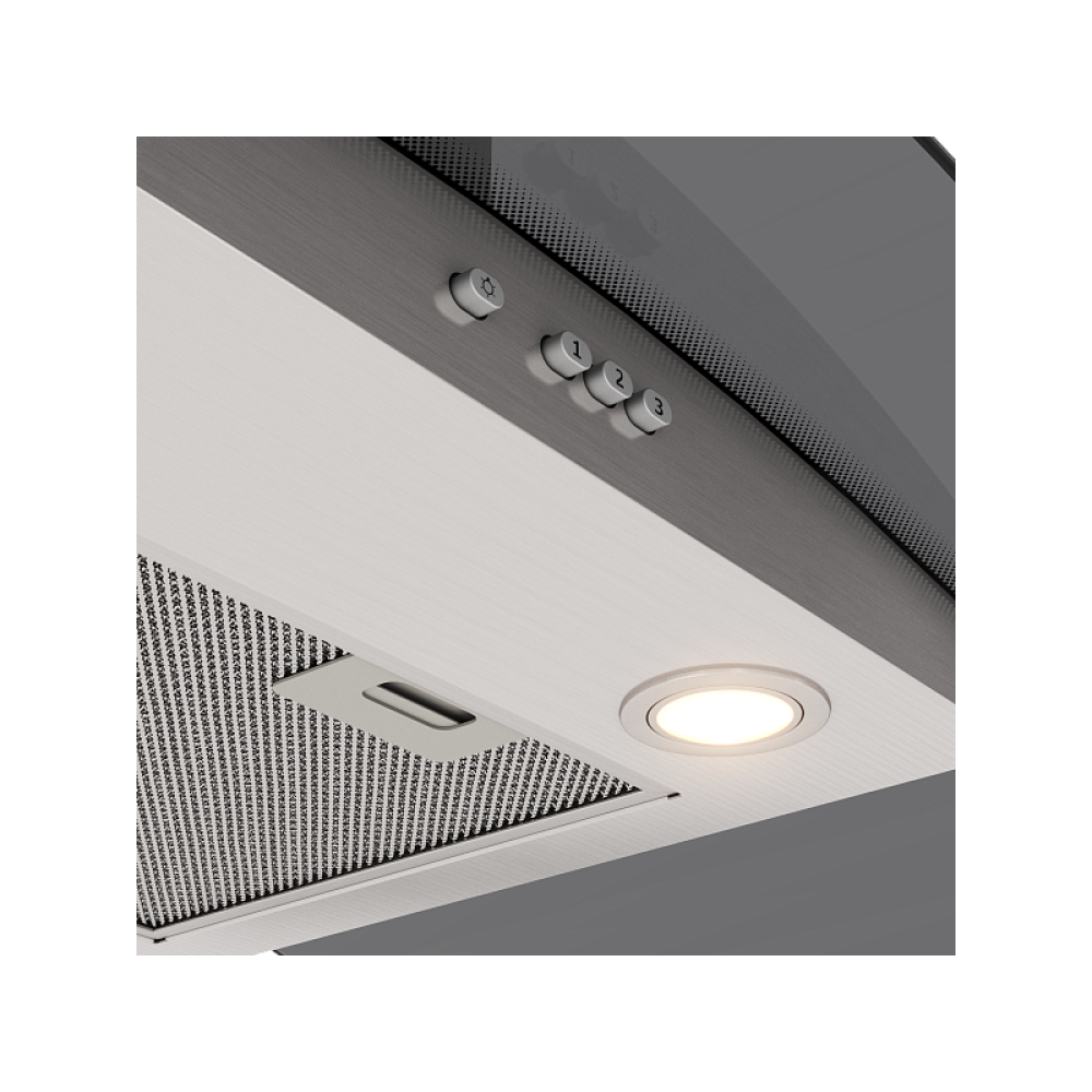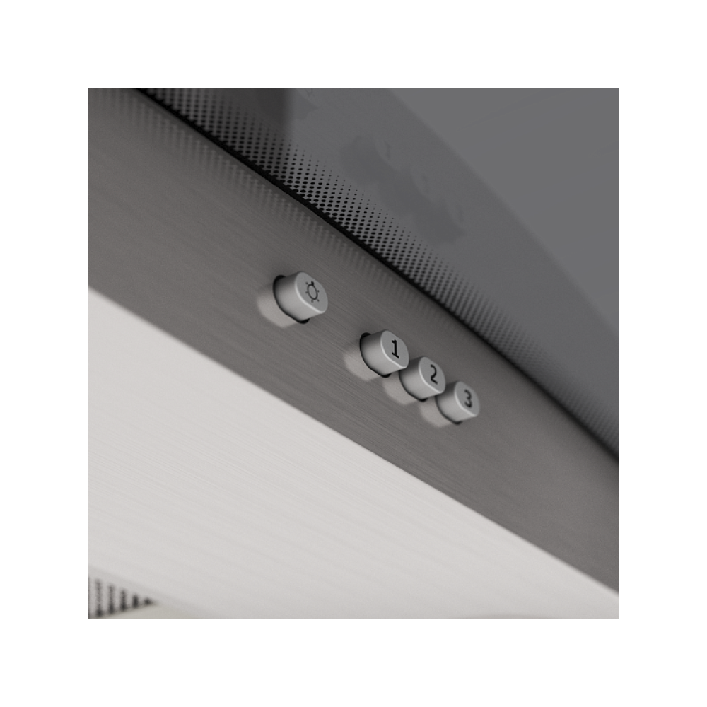 Модель оснащена механическим управлением с кнопками — простым и надёжным в эксплуатации. Доступно 3 скорости работы, что позволяет гибко регулировать интенсивность всасывания в зависимости от интенсивности готовки.