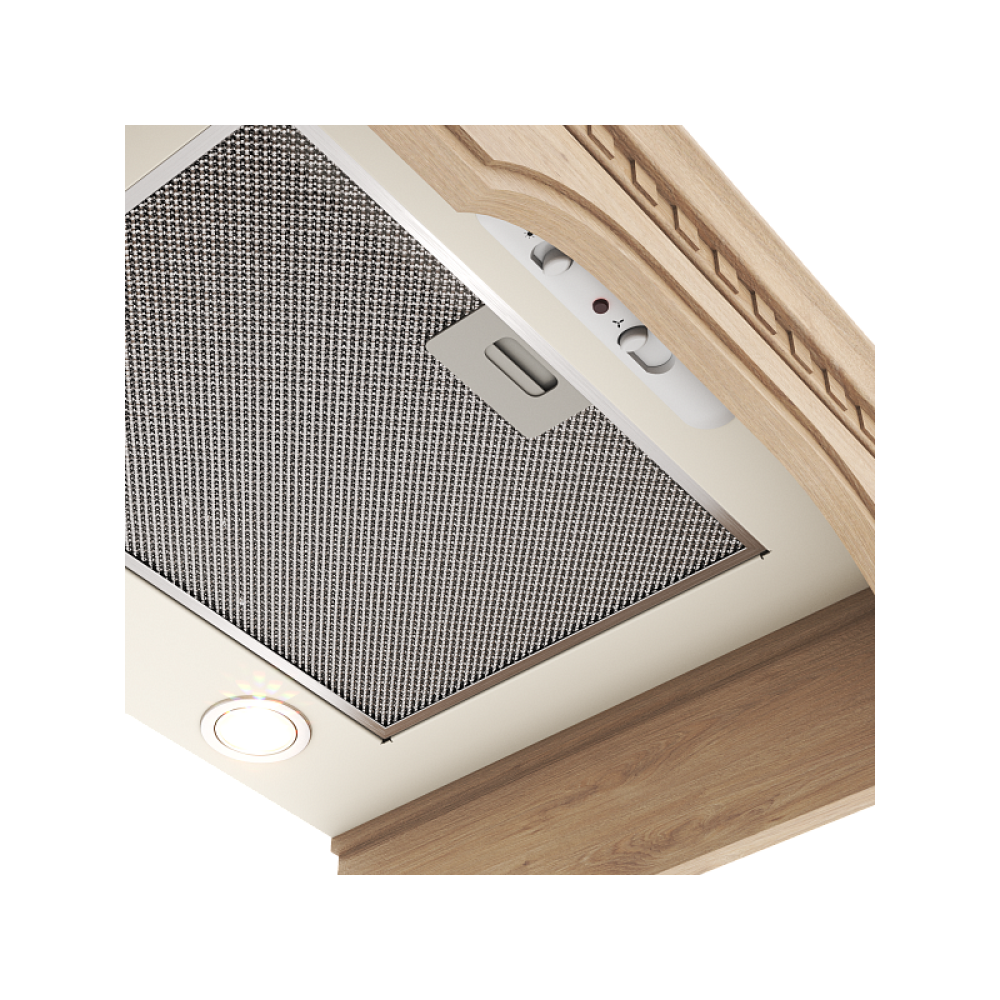Вытяжка ELIKOR Бельведер Флореале 60П‑650‑П3Д выполнена в сочетании бежевого цвета с элементами под неокрашенный дуб. Такой дуэт придаёт прибору тёплый, природный облик и позволяет органично вписать его в интерьеры в стиле кантри или прованс.