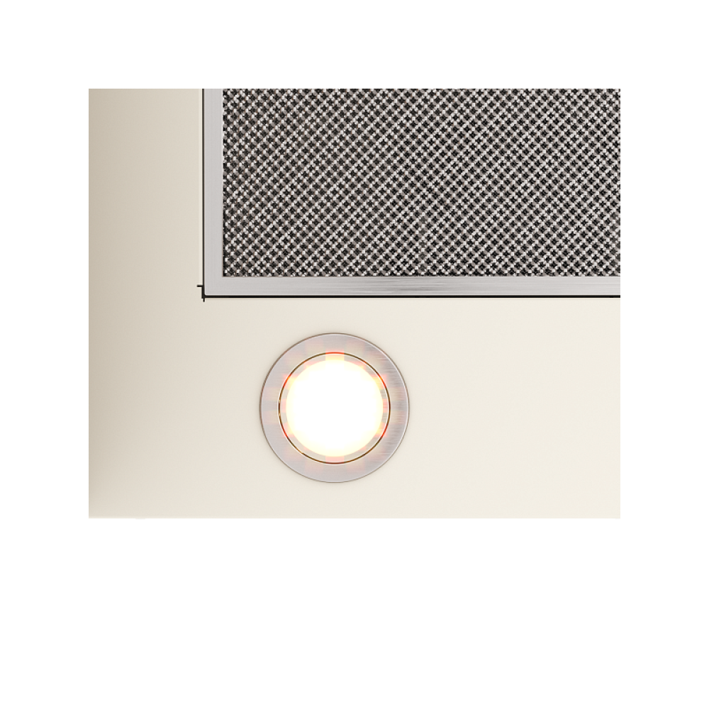 Две галогенные лампы (по 20 Вт каждая) обеспечивают хорошее освещение рабочей зоны. В комплекте — алюминиевый жироулавливающий фильтр (380 × 280 мм с одним замком), который эффективно задерживает частицы жира и упрощает уход за устройством.