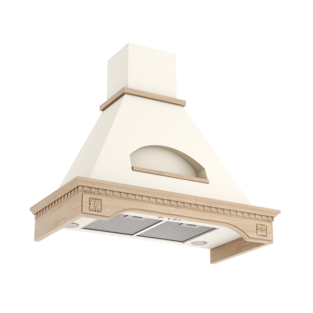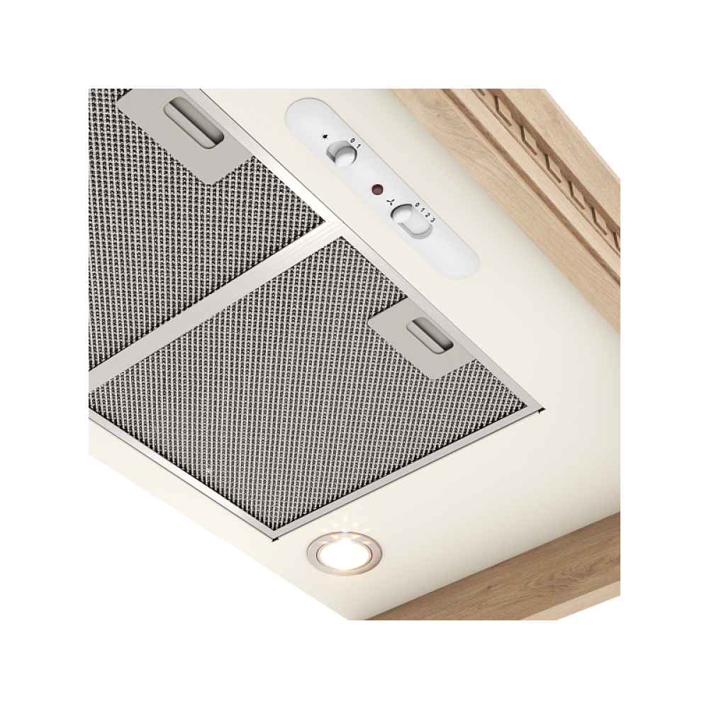 Вытяжка ELIKOR Бельведер Флореале 90П‑650‑П3Д сочетает бежевый корпус с элементами под неокрашенный дуб. Такой дуэт придаёт прибору уютный, «деревенский» шарм и делает его удачным выбором для кухонь в стиле кантри или прованс.