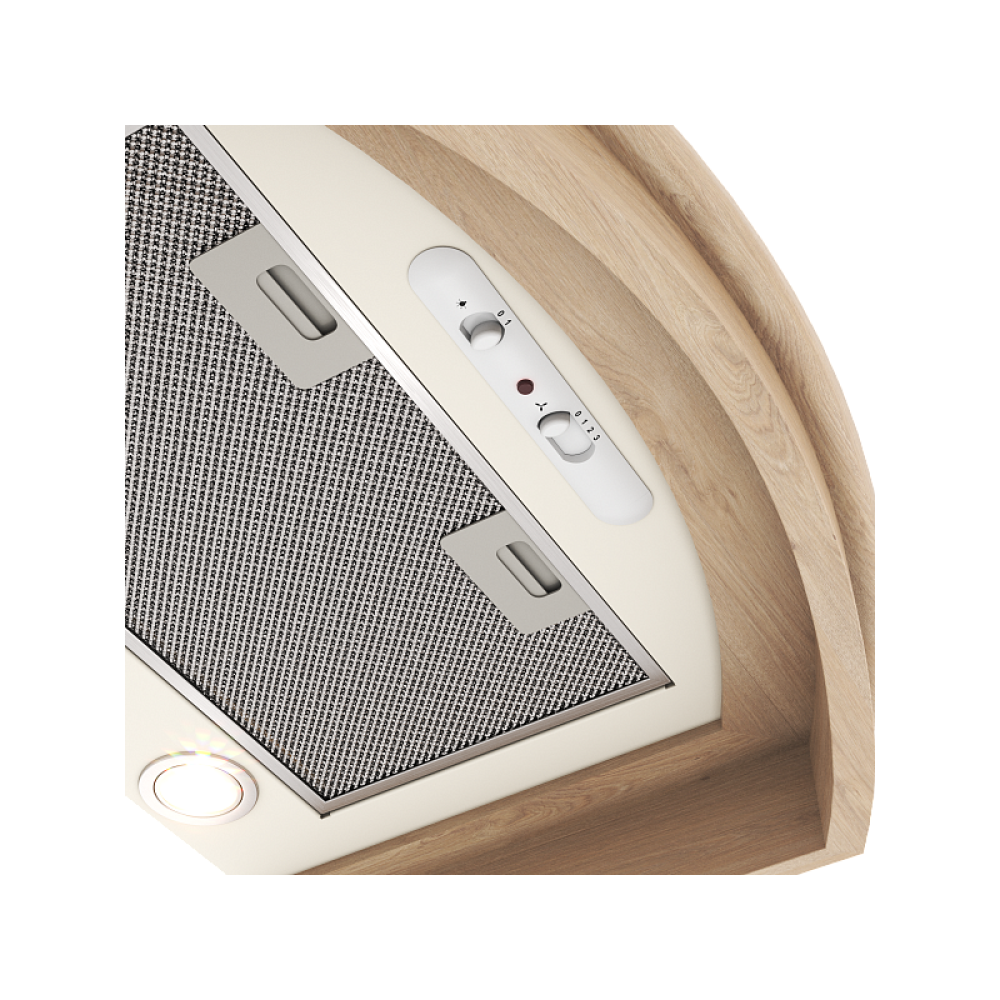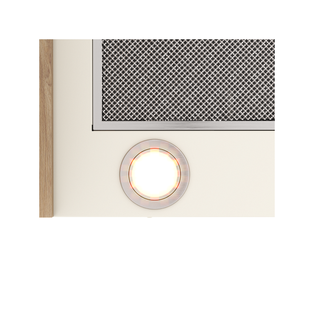 Вытяжка ELIKOR Ротонда 60П‑1000‑П3Д сочетает бежевый корпус с элементами под неокрашенный дуб. Такое оформление придаёт прибору уютный вид и позволяет органично вписать его в интерьеры в классическом, кантри или прованс‑стиле.