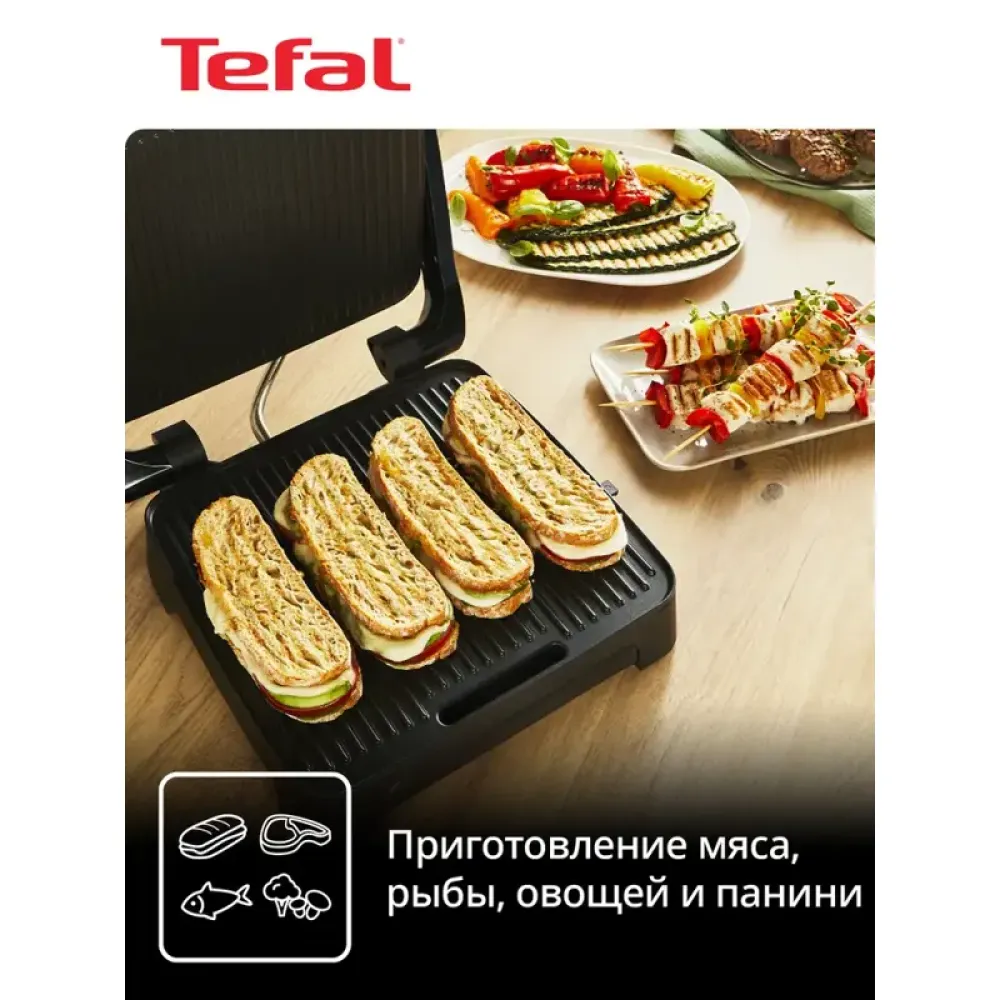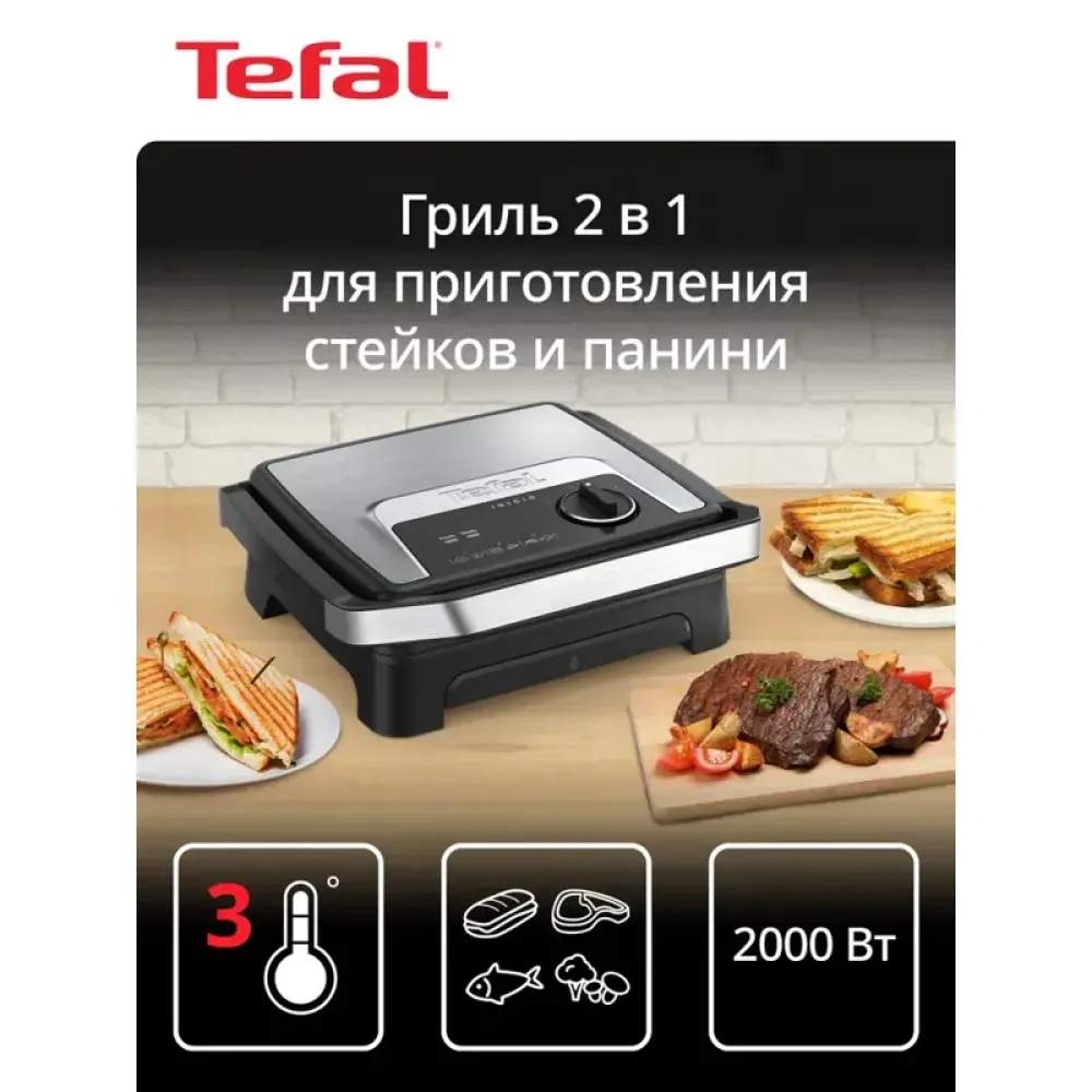 Электрогриль Tefal Inicio Adjust GC272D10 — универсальное устройство 2‑в‑1: панини‑тостер и гриль, сочетающее удобство, точный контроль температуры и быстрый нагрев для вкусных, разнообразных блюд.