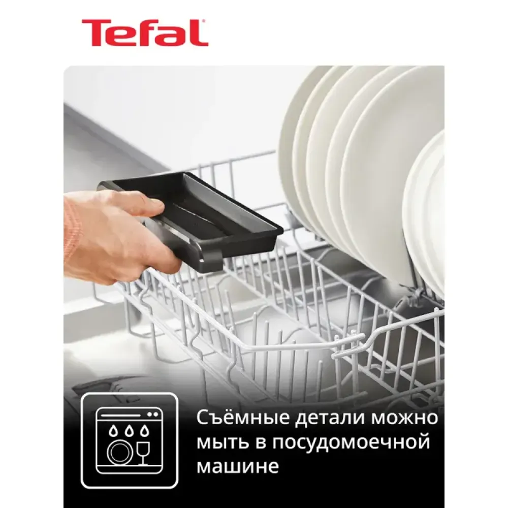 Антипригарное покрытие обеспечивает лёгкую очистку. Имеется съёмный лоток для сбора жира, пригодный для мытья в посудомоечной машине.Прибор можно хранить вертикально и аккуратно уложить шнур в предусмотренное место — экономит пространство на кухне.