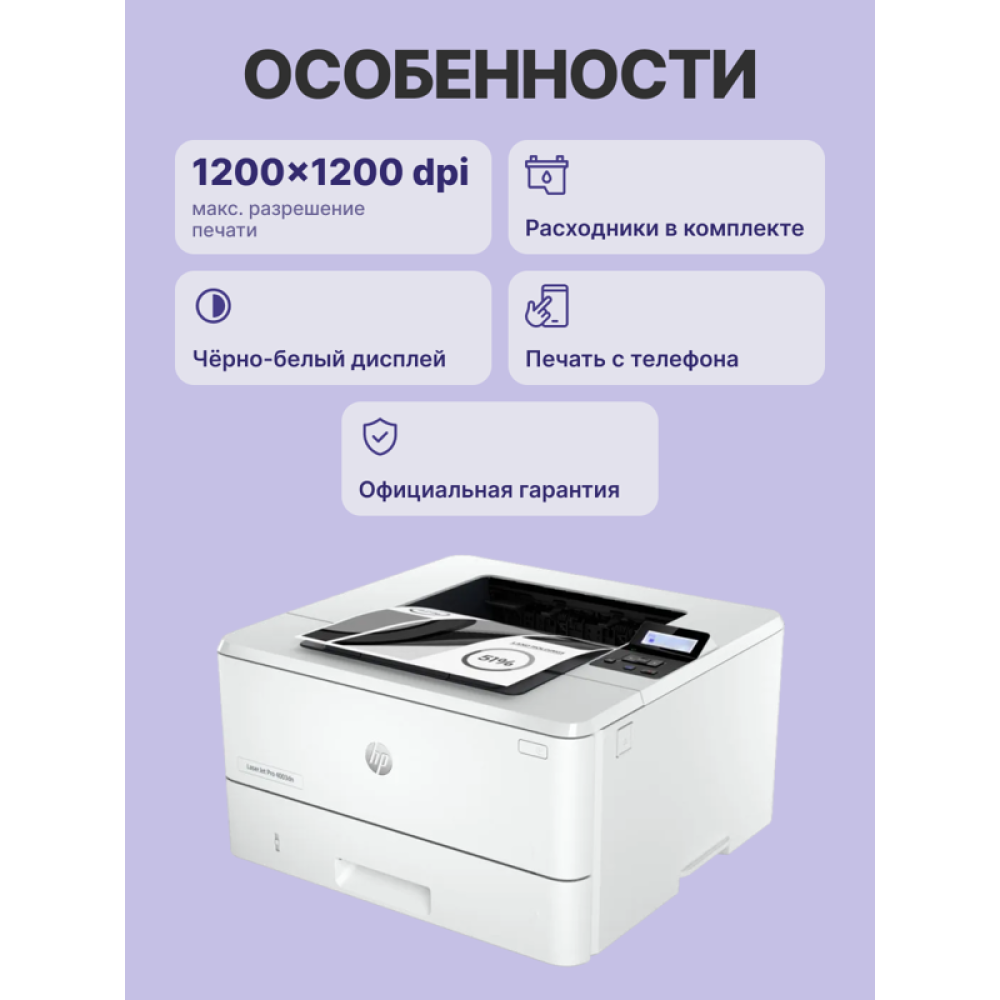 Принтер лазерный HP LaserJet Pro 4003dn отличается высокой производительностью. За минуту модель создает 40 черно-белых страниц формата А4. В процессе работы используется стандартная бумага, конверты, этикетки и другие носители. Устройство комплектуется тонером, ресурс которого рассчитан на получение до 3050 отпечатков.Принтер лазерный HP LaserJet Pro 4003dn совместим с различными ОС и оборудован поддержкой мобильных технологий. Точному выбору параметров способствует встроенный ЖК-дисплей. Максимальный объем печати в течение месяца достигает 80000 файлов различной направленности.