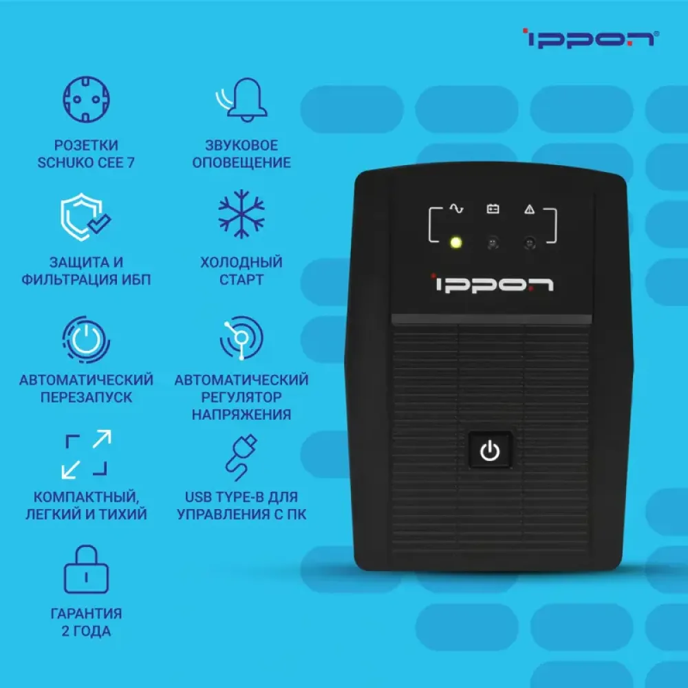 Диапазон входного напряжения: 162–275 В. Частота сети: 45–65 Гц. Время переключения на батареи — около 10 мс. Устройство обеспечивает стабильную работу подключённой техники даже при значительных колебаниях напряжения в сети.