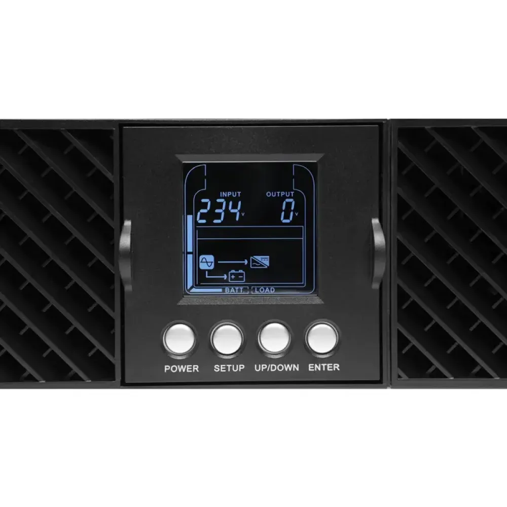 Интуитивно понятная передняя панель с ЖК-дисплеем и кнопками управления обеспечивает быстрый доступ ко всем функциям устройства. Интерфейсы USB и RS‑232 позволяют подключить ИБП к компьютеру для мониторинга параметров работы.