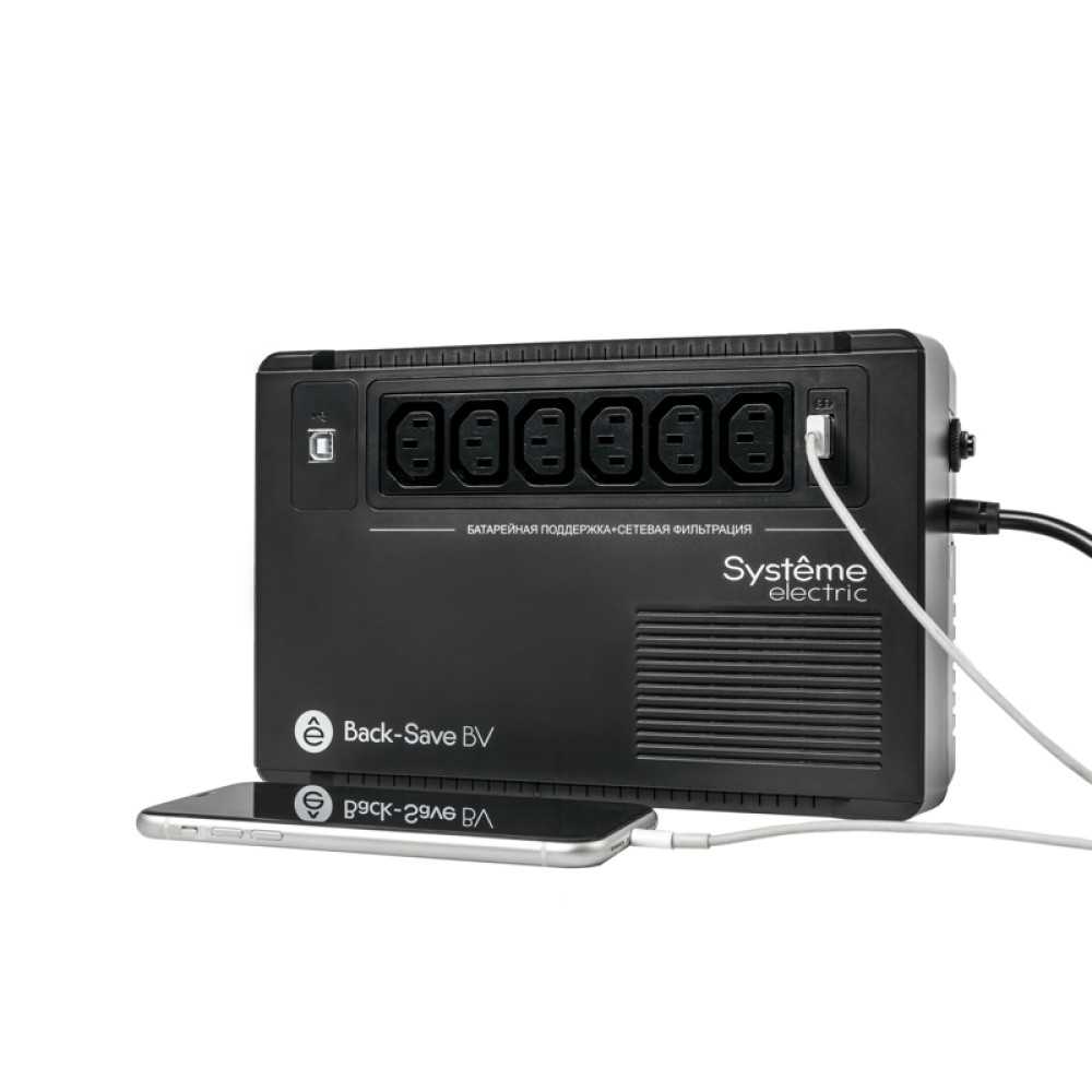 ИБП Systeme Electric Back-Save BV 600 ВА, автоматическая регулировка напряжения, 6 розеток С13, 230 В, 1 USB Type-A