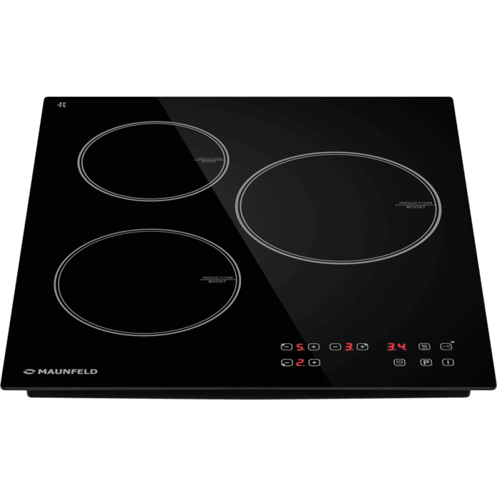 Индукционная варочная панель MAUNFELD CVI453BK, 45 см, сенсорное управление, Flex Zone, 3 конфорки, мощность конфорок 2000, 1200, 2300 Вт, таймер, автоматическое выключение, бустер, блокировка панели, пауза, черный цвет
