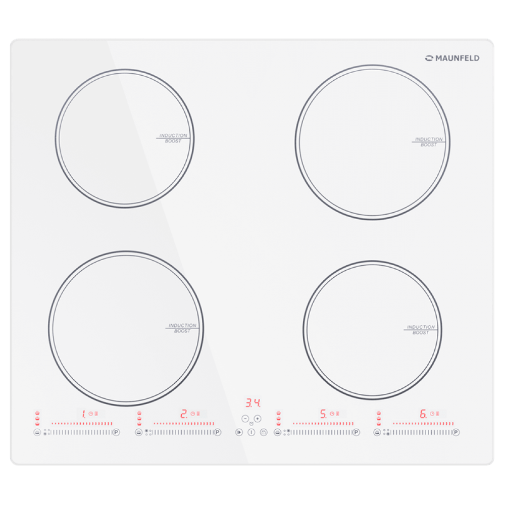 Индукционная варочная панель Maunfeld/ Индукционная варочная панель Maunfeld CVI594SWH сенсорное управление, 4 конфорки, мощность конфорок 2000, 2000, 1200, 1200 Вт, таймер, автоматическое выключение, бустер, блокировка панели, цвет белый