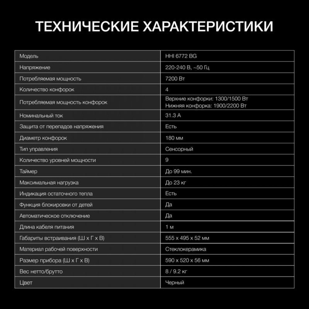 Индукционная варочная поверхность/ Индукционная варочная поверхность Hyundai HHI 6772 BG черный