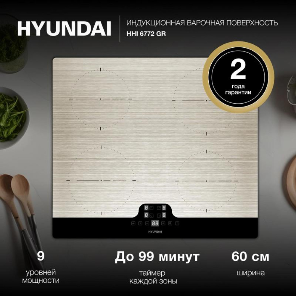 Индукционная варочная поверхность/ Индукционная варочная поверхность Hyundai HHI 6772 GR серебристый