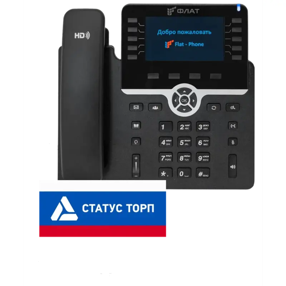 IP телефон Flat-Phone В10 - современный IP-телефон отечественного производства, оснащенный 4,3-дюймовым цветным LCD-дисплеем, HD полнодуплексным динамиком и микрофоном, обеспечивает комфортные голосовые коммуникации каждый день.