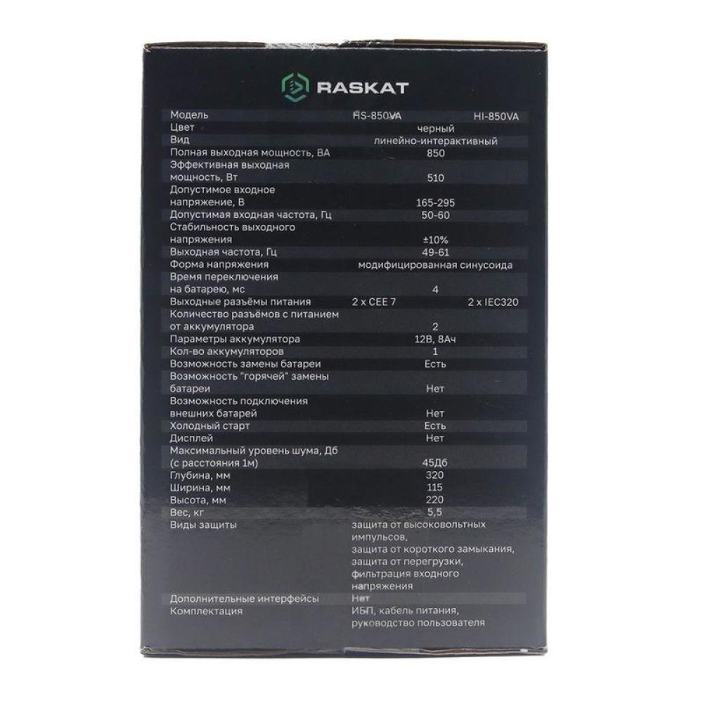 Источник бесперебойного питания (ИБП) Raskat HI-850VA 850VA, 510Вт, 4хIEC320