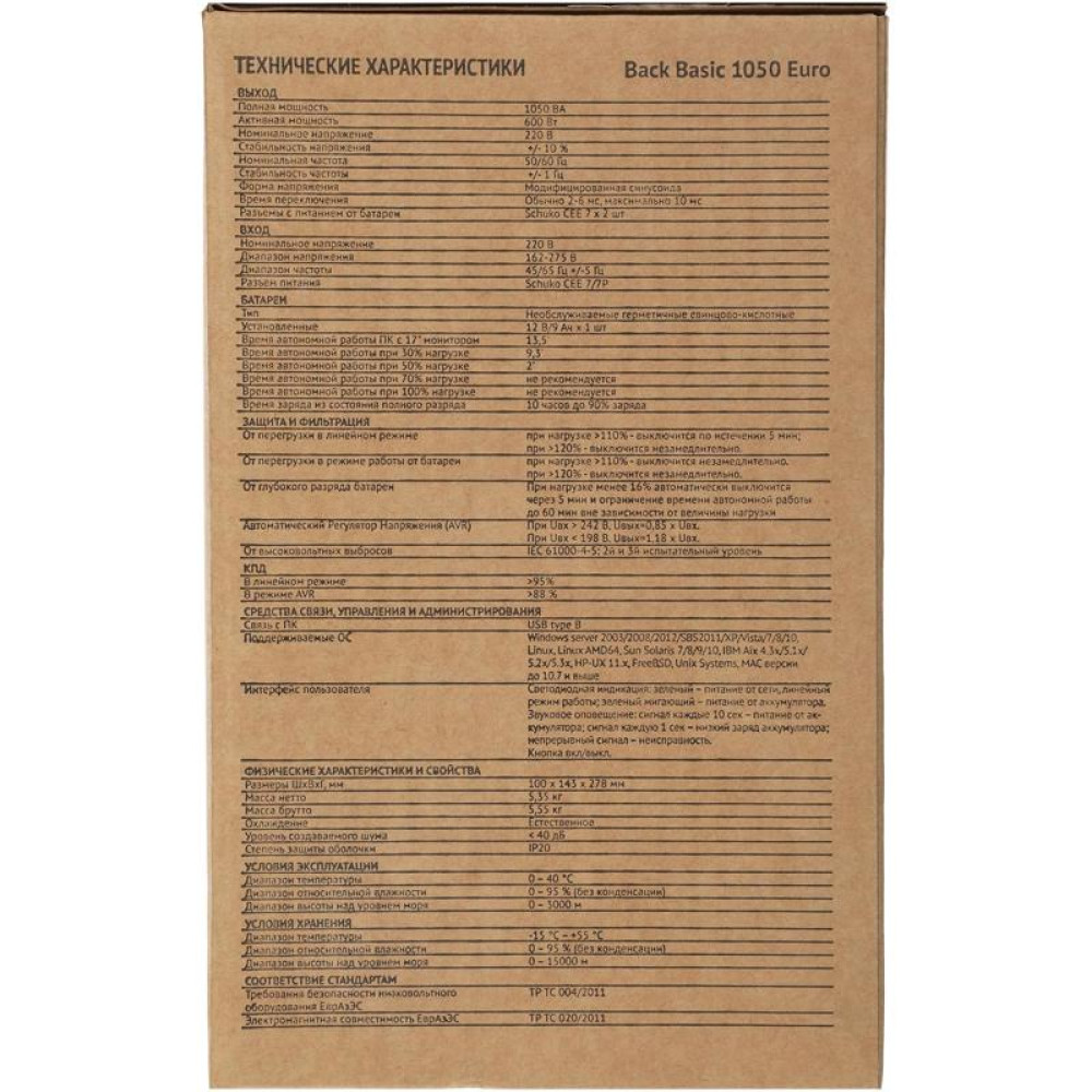 Источник бесперебойного питания Ippon Back Basic 1050 Euro 600Вт 1050ВА черный
