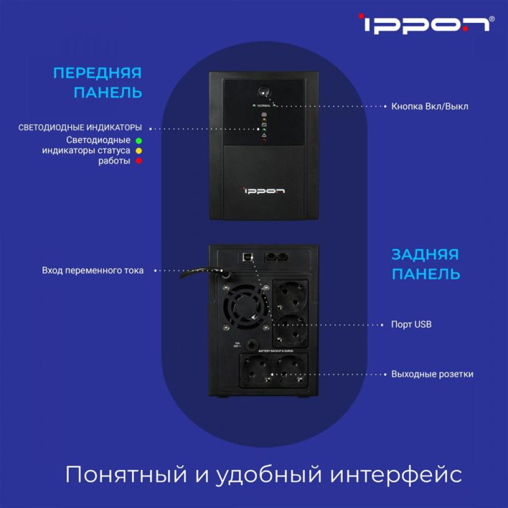 Источник бесперебойного питания Ippon Back Basic 1500 Euro 900Вт 1500ВА черный
