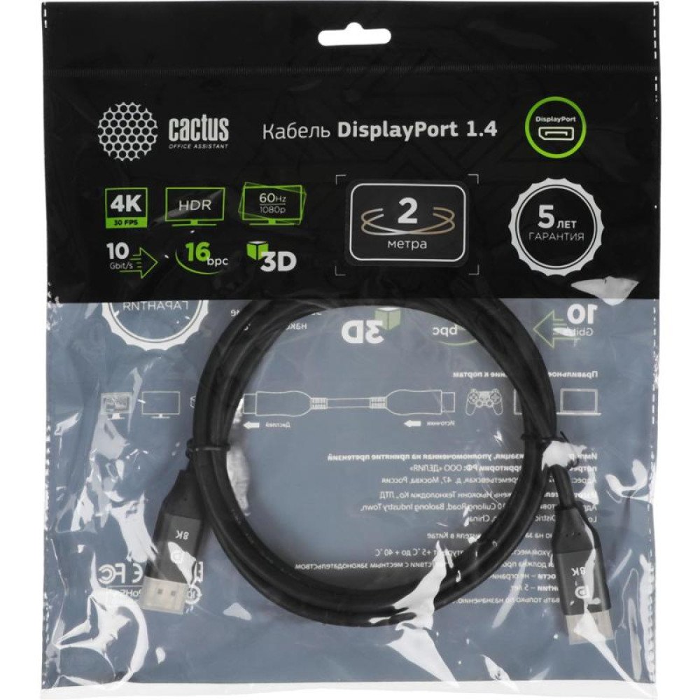 Кабель аудио-видео Cactus CS-DP-DP-1.4-2 DisplayPort (m)/DisplayPort (m) 2м. позолоч.конт. черный
