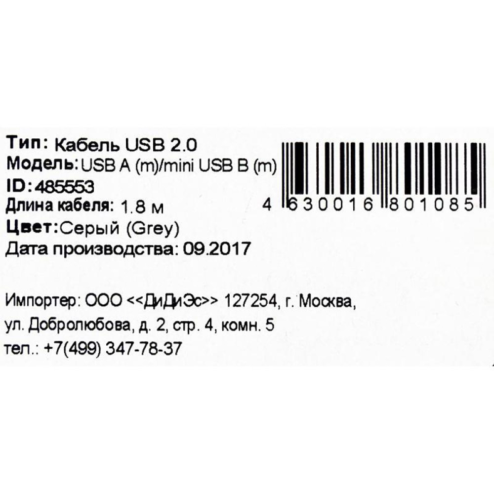Кабель Buro BHP RET USB_MINI18 USB (m)-mini USB (m) 1.8м серый [BHP RET USB_MINI18]