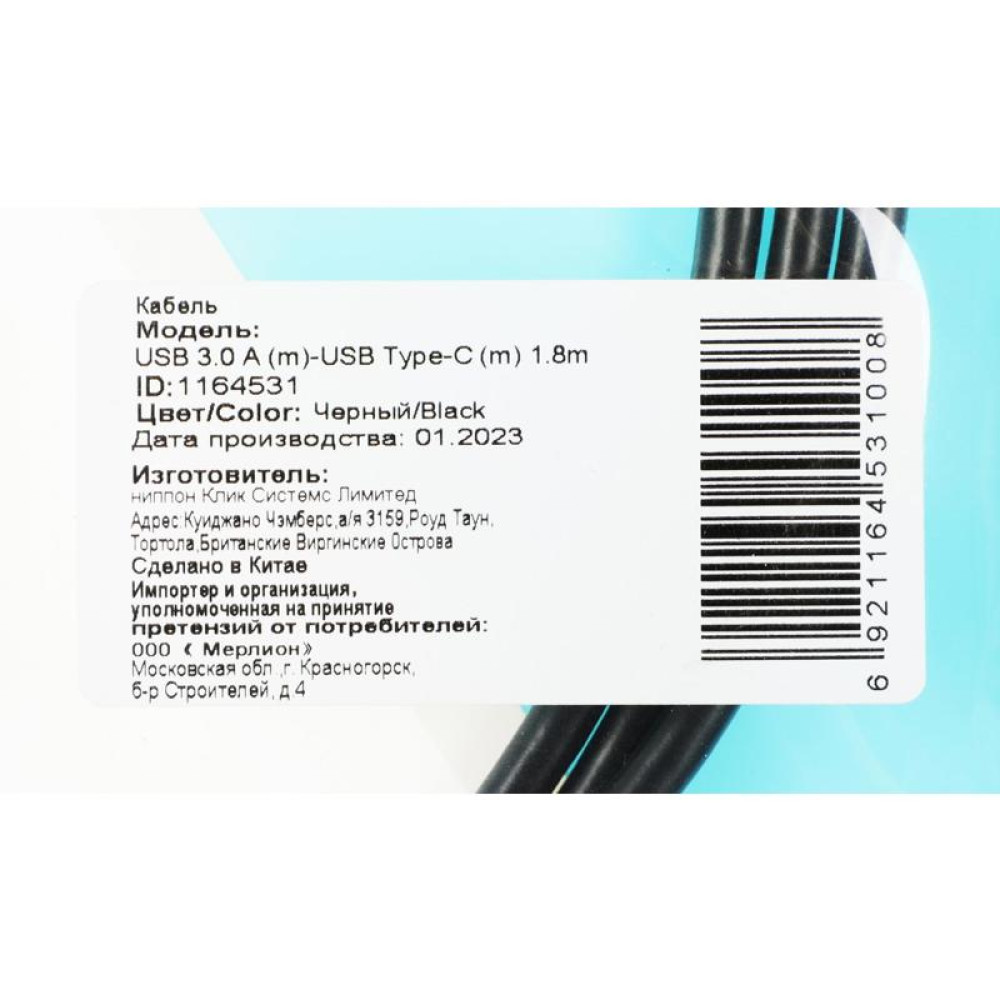 Кабель Buro BHP USB-TPC-1.8 USB (m)-USB Type-C (m) 1.8м черный [BHP USB-TPC-1.8]