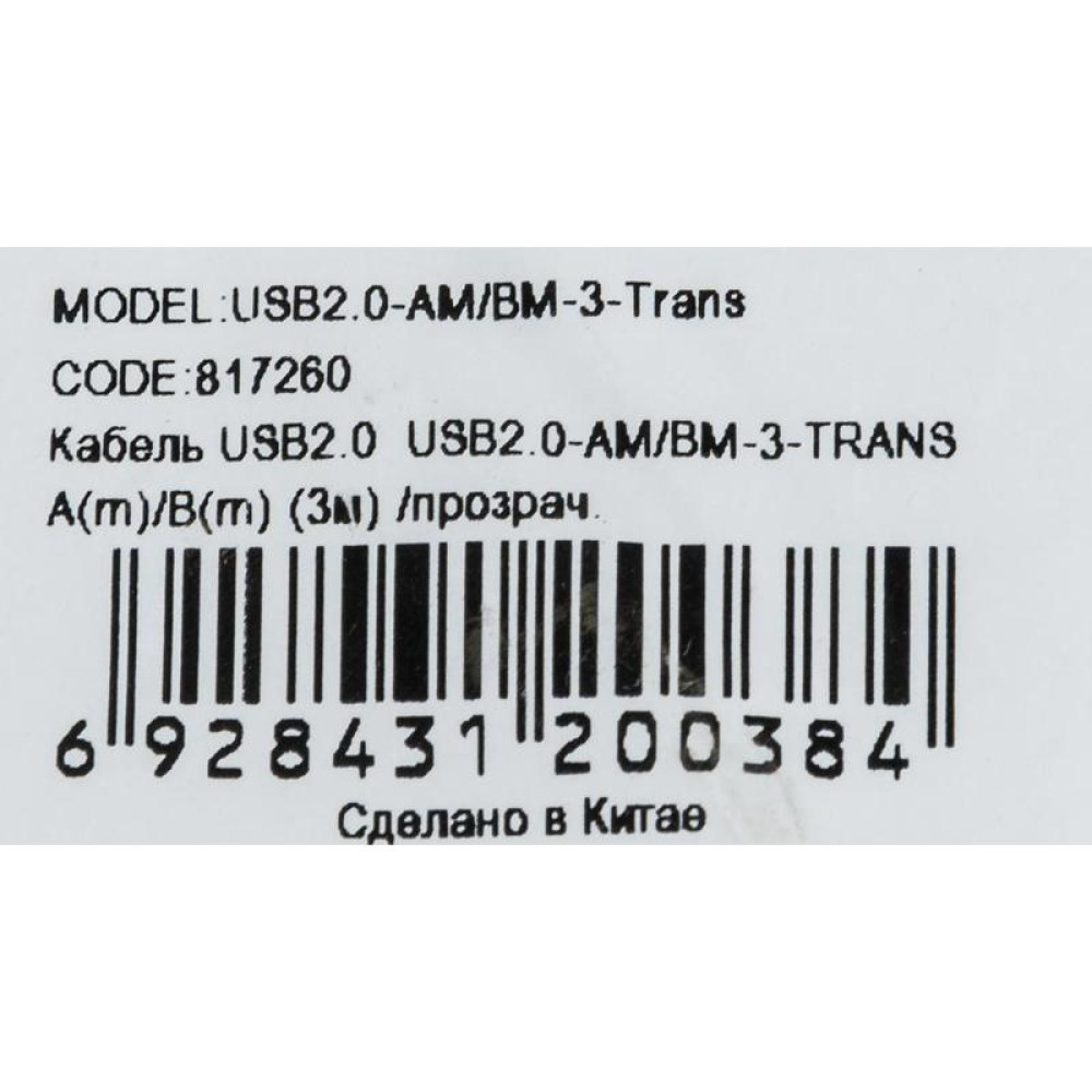 Кабель Buro USB2.0-AM/BM-3-TRANS USB A(m) USB B(m) 3м прозрачный [USB2.0-AM/BM-3-TRANS]