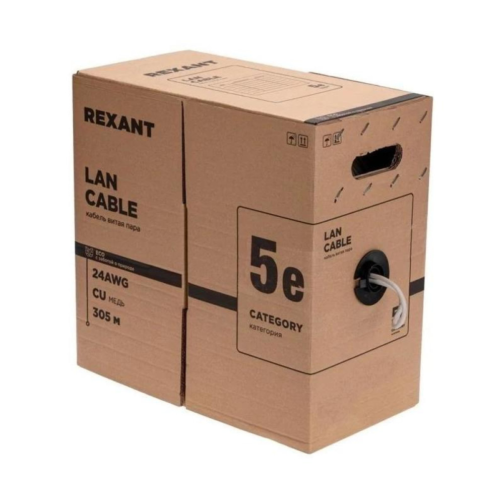 Кабель информационный Rexant 01-0143-R кат.5E F/UTP 4 пары 24AWG PVC внутренний 305м серый