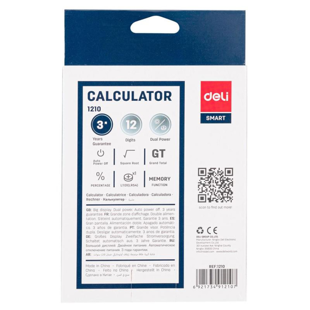 Калькулятор настольный Deli E1210 темно-серый 12-разр.
